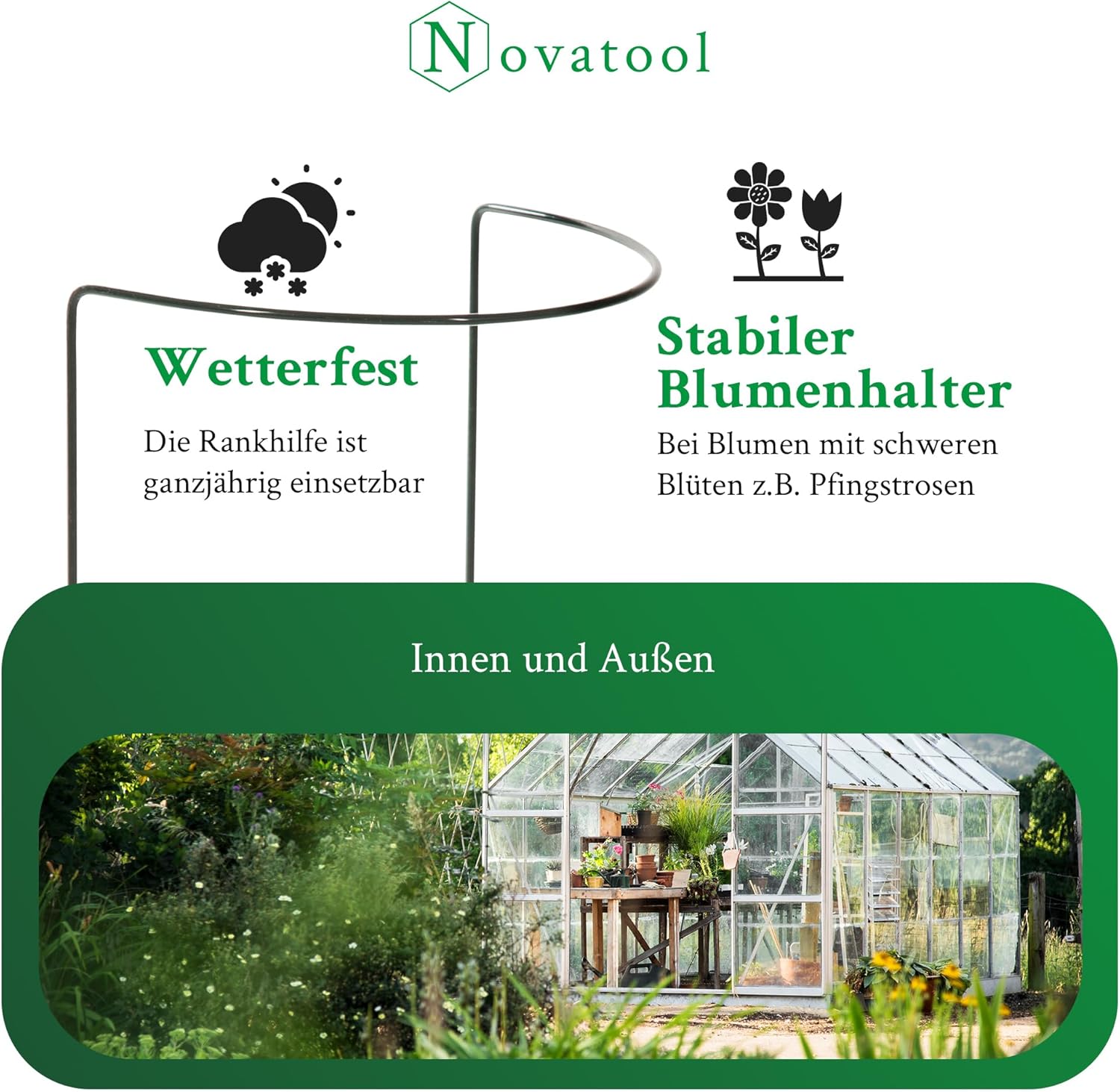 - Lieferumfang: Sie erhalten drei Strauchstütze halbrund der Marke Novatool. Zwei Staudenhalter halbrund ergeben einen Pflanzenring.
