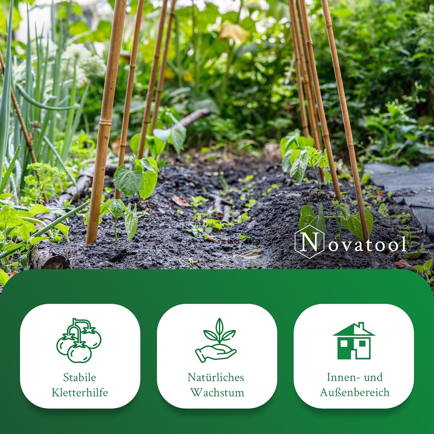 - Damit sind die Novatool Rankstäbe die ideale Stütze für Ihre Nutzpflanzen zum Beispiel für Sträucher, langstielige Blumen, Zierblumen, Hochstämme, Hecken oder zur Kletterhilfe für Ihr Gemüse beispielsweise als Bohnenstange Tomatenstäbe oder