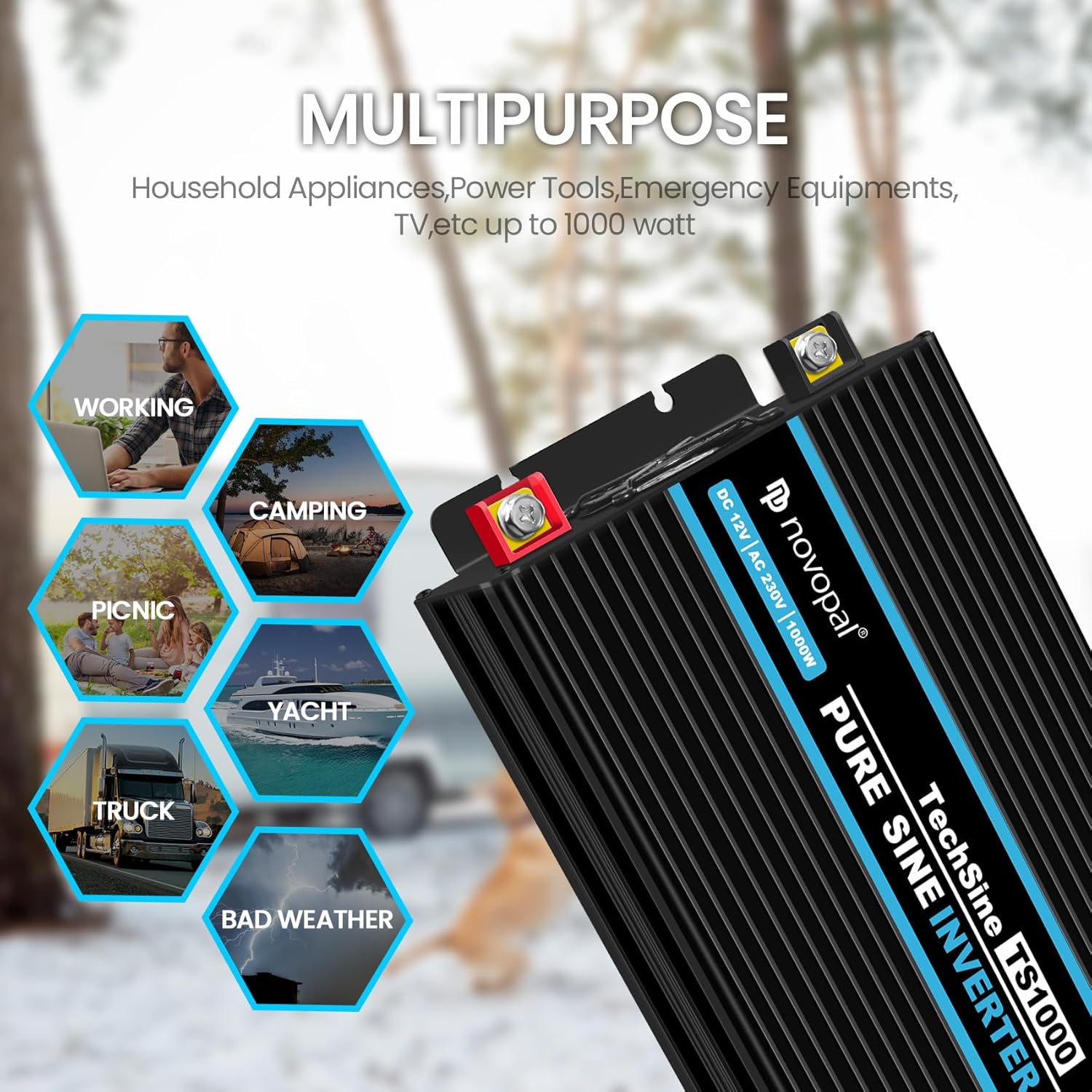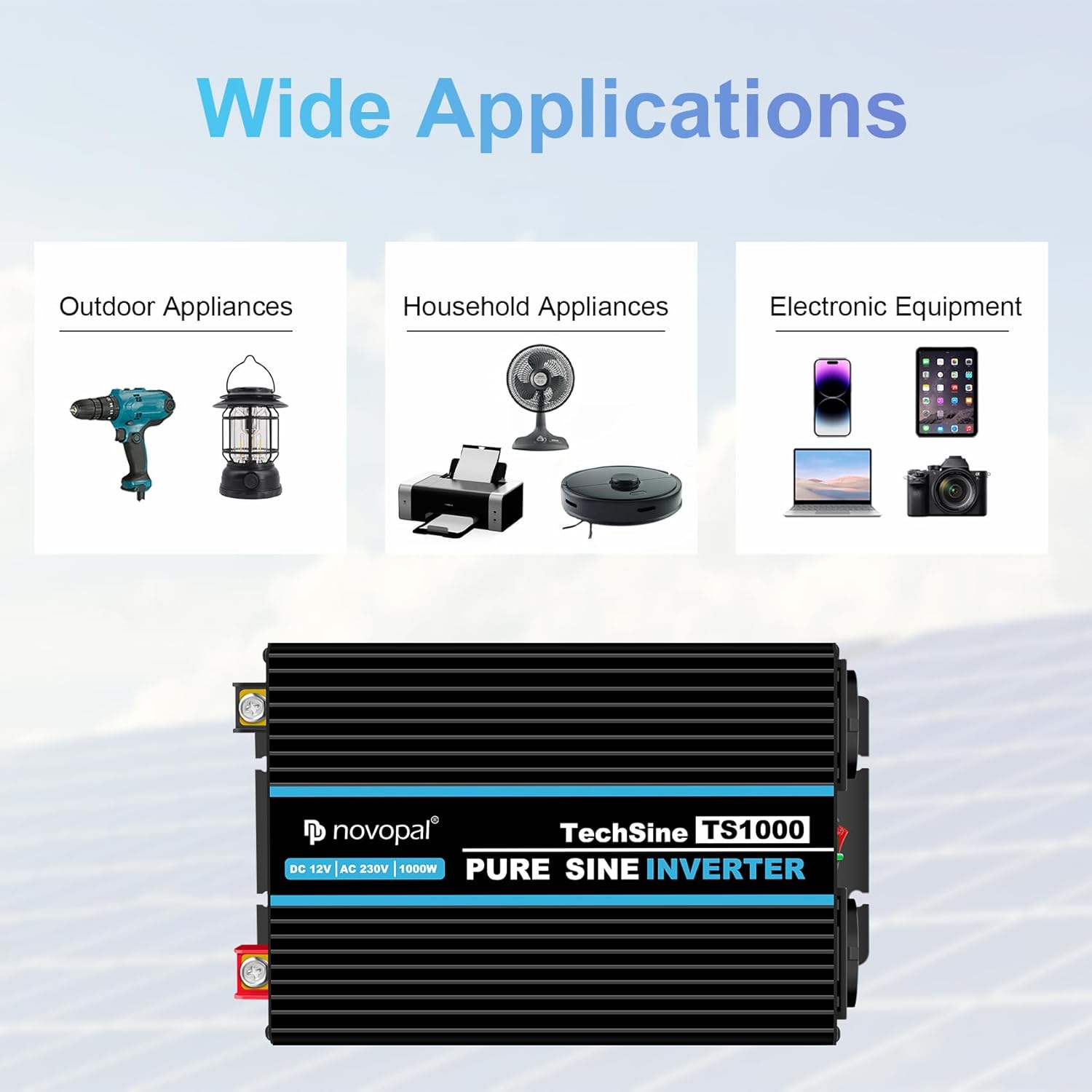novopal 1000W KFZ Reiner Sinus Spannungswandler-Auto Wechselrichter 12v auf 230v Umwandler-Inverter
