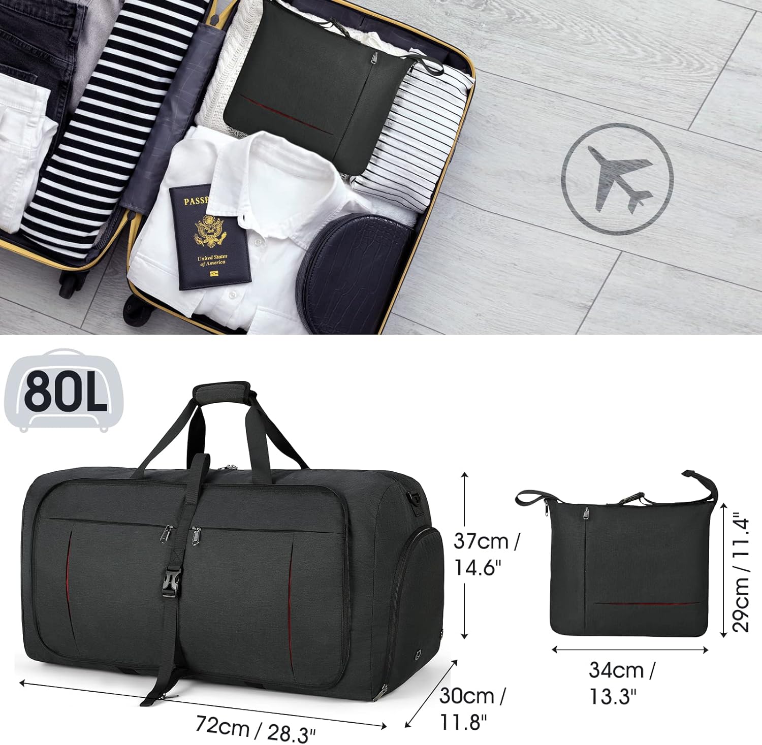 - 【Faltbare, leichte handgepäck tasche】Mit einem Fassungsvermögen von 80 Litern wird sie Sie überraschen, wie viel sie transportieren kann, sogar mehr als Ihr grosser Koffer, aber sie ist mit 0,91 kg, 1/6 eines Koffers, sehr leicht. Mit einem