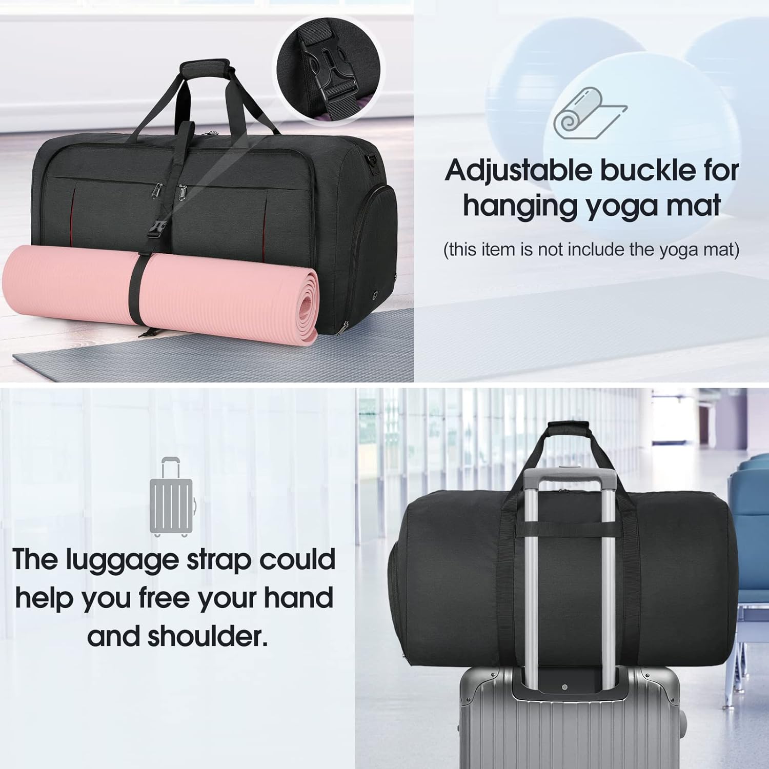 - 【Vielseitiges Design】Wir bieten drei Grössen von sporttasche(65L/80L/100L). Der zusätzliche vordere verstellbare Schnallenriemen kann jede Grösse Ihrer Yogamatte aufnehmen. In der Zwischenzeit helfen die hinteren Gepäckgurte Ihnen, Ihre Hände