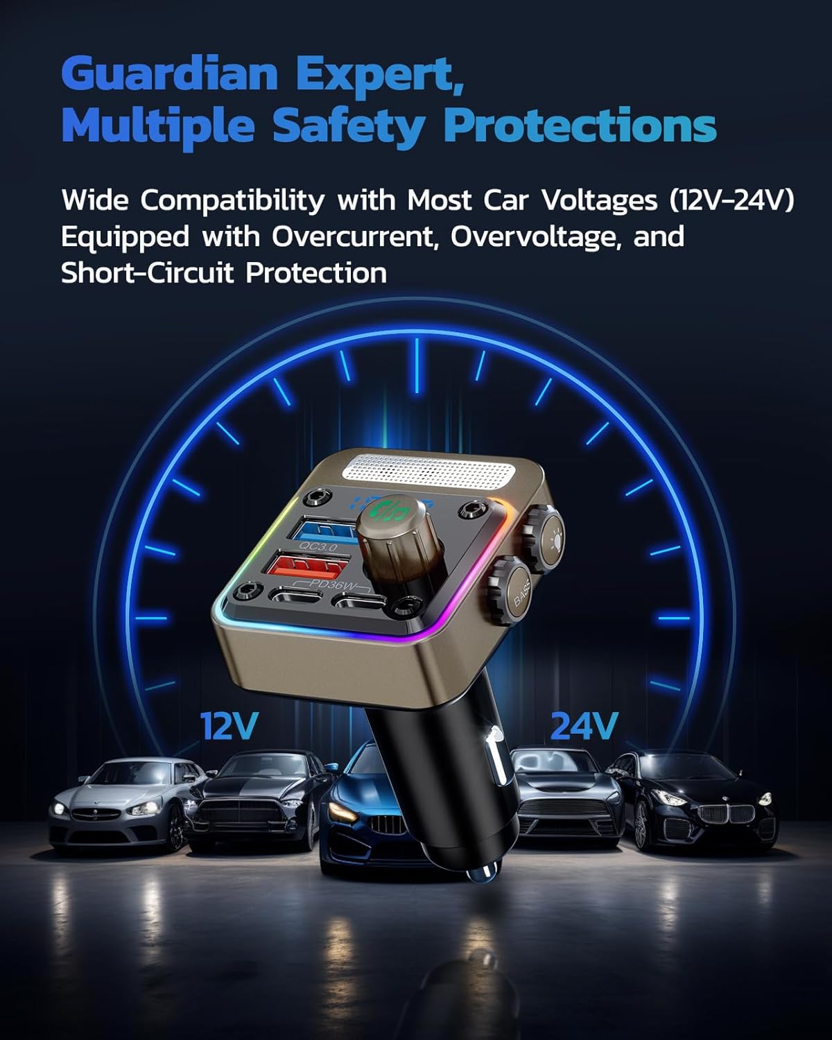 Nulaxy Bluetooth 5.3 FM Transmitter 54 W [PD 36W & QC3.0 18W] Schnelles Autoladegerät mit 4 Ladeansc