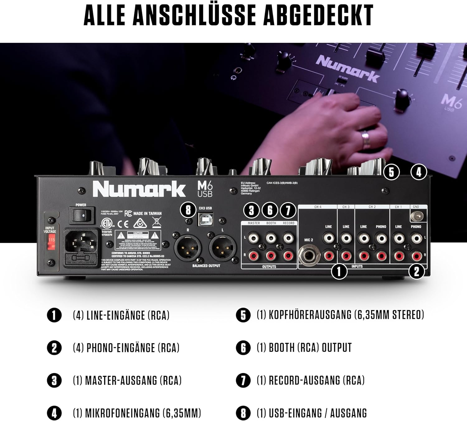 - USB-Verbindung - Dank der nahtlosen Plug-and-Play USB-Verbindung für Mac und PC mixen Sie Ihre Musik vom Laptop oder nehmen Ihre Sets mit nahezu jeder Audio-Recording Anwendung auf