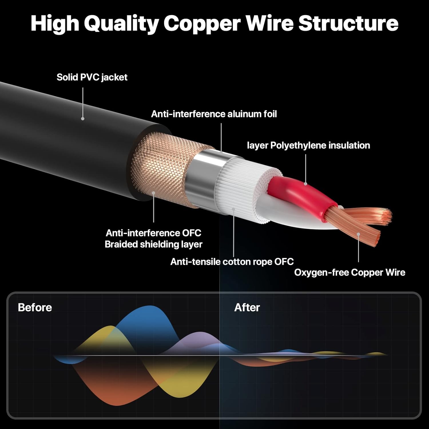 - ➤ [Doppelte Abschirmung zur Vermeidung von Störungen ] - Die Abschirmung aus Folie und Metallgeflecht verhindert, dass die Klangqualität durch externe Signale gestört wird. Dieses Mikrofonkabel ist eine gute Wahl, wenn es mit Audiogeräten in einer