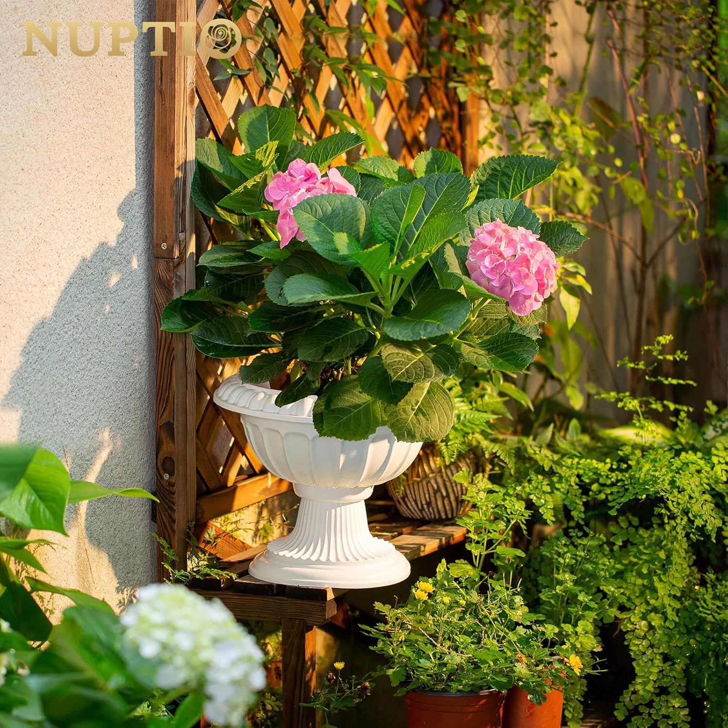 - GROSSER AUSSENPFLANZER: Eine breite Öffnung (mit einem Durchmesser von 25.8 cm) in dieser Urne bietet gerade genug Platz für aufwändige Arrangements. Sie können künstliche Geranien, Topiaries, Farne, Kanzeln und künstliche Kiefern darauf setzen.