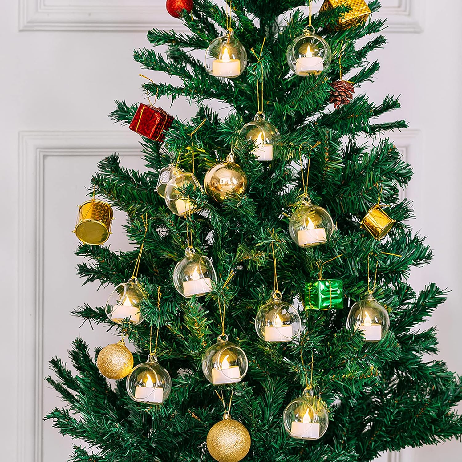 Nuptio 24 Stück Hängende Glas Teelichthalter Globus 6cm Durchmesser, Teelicht Kerzenhalter Hochzeit