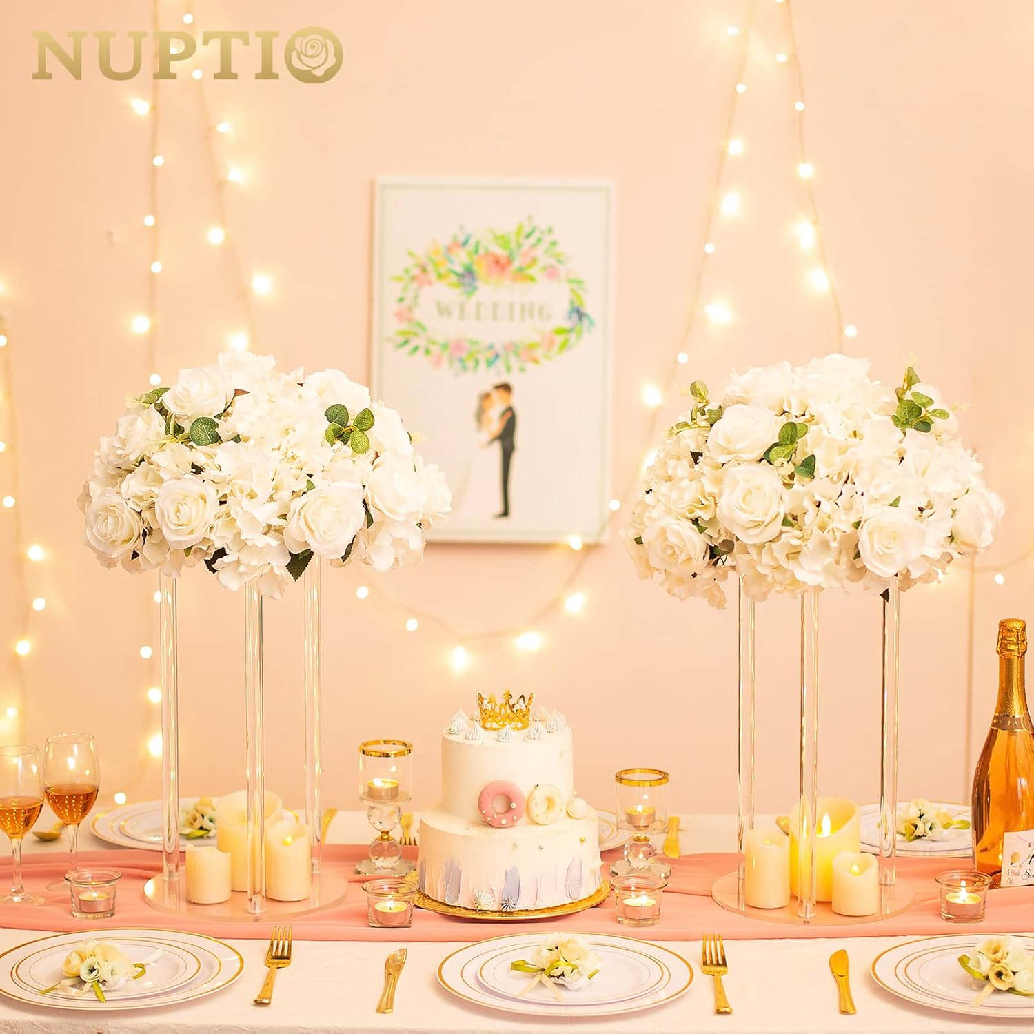 NUPTIO Blumenkugel Arrangement Strauss 10 Stück 40cm Durchmesser Weiss Gefälschte Blumen Rosen Kugel