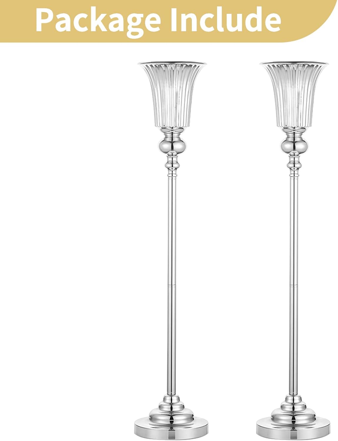 NUPTIO Blumenständer Metall Silber Vase: 2 Stück 77.5cm Hoch Blumenvase Hochzeit Ständer Trompete Va