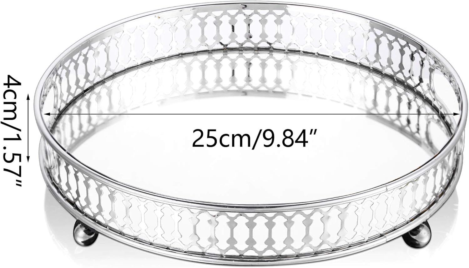 NUPTIO Spiegelglas Makeup Tablett 25cm Durchmesser, Silber Runde Deko Tablett Kerzenplatte Schmuck T