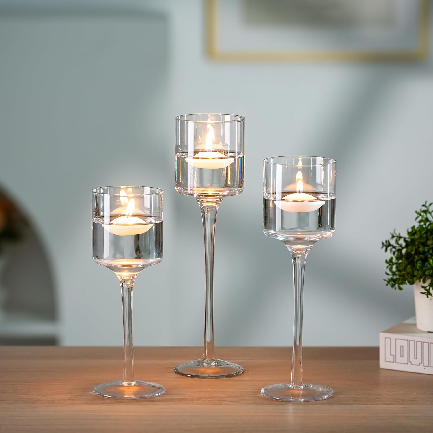 Nuptio Teelichthalter 3 Stück Glas Kerzenhalter für Teelicht & Schwimmkerzen Hohe Elegante Stumpenke
