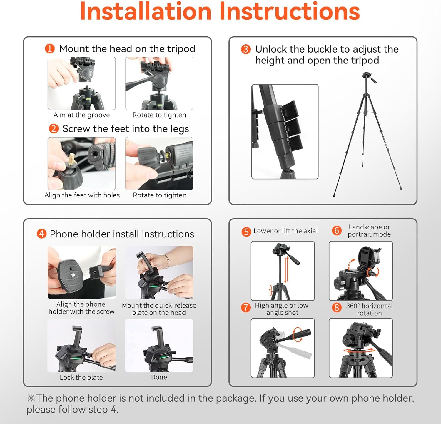 • 【Gute Tragbarkeit】 Das Stativ wird mit einer Tragetasche mit Reissverschluss geliefert und lässt sich schnell und einfach aufbauen. Dadurch kann es bequem unterwegs verwendet werden. Sehr empfehlenswert für Fotografie, Videografie, Selbstporträts,