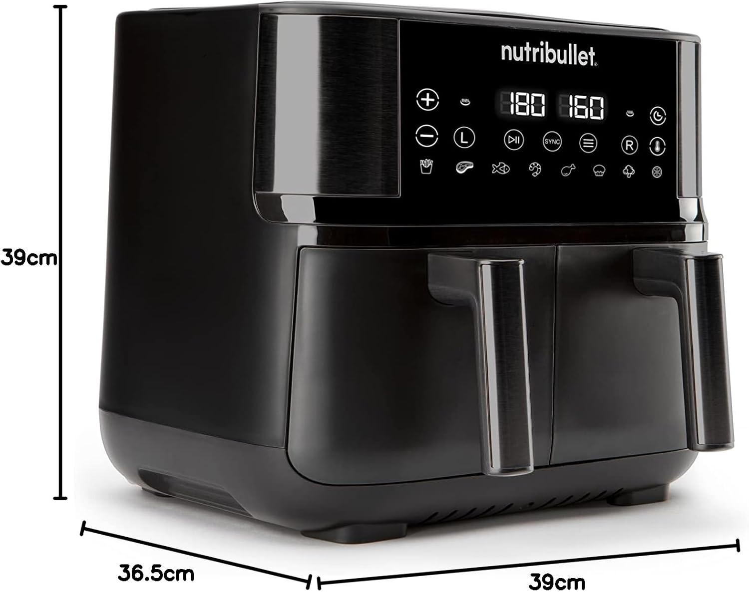 - [GETRENNTE KORBEINSTELLUNGEN] Bereite zwei separate Speisen auf separaten Einstellungen gleichzeitig zu oder synchronisiere die Frittierkörbe, um zwei Portionen desselben Gerichts zur gleichen Zeit zuzubereiten.