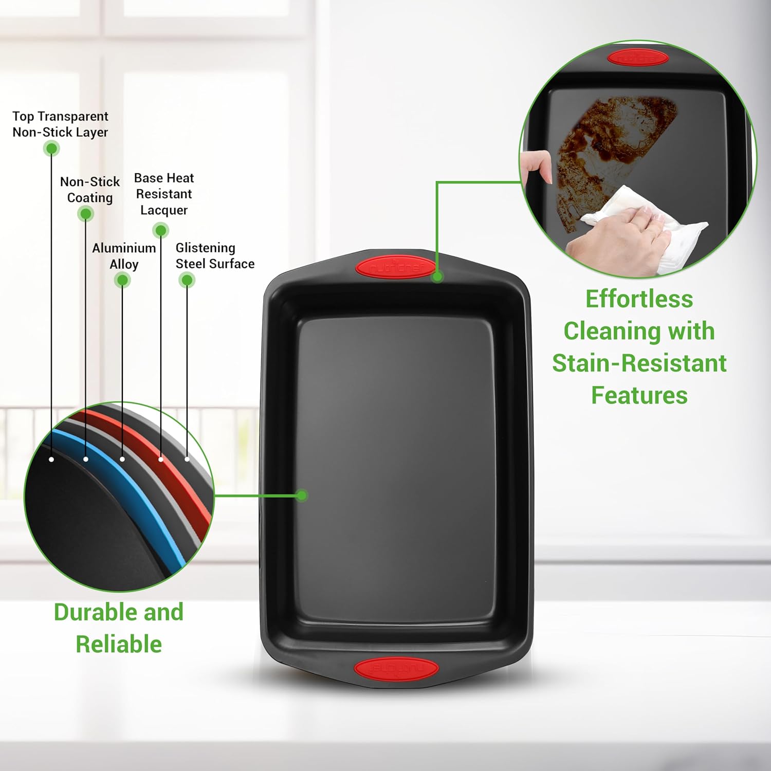 NutriChef 3-Piece Baking Pan Set - PFOA, PFOS, PTFE Free Flexible Nonstick Black Coating Carbon Stee