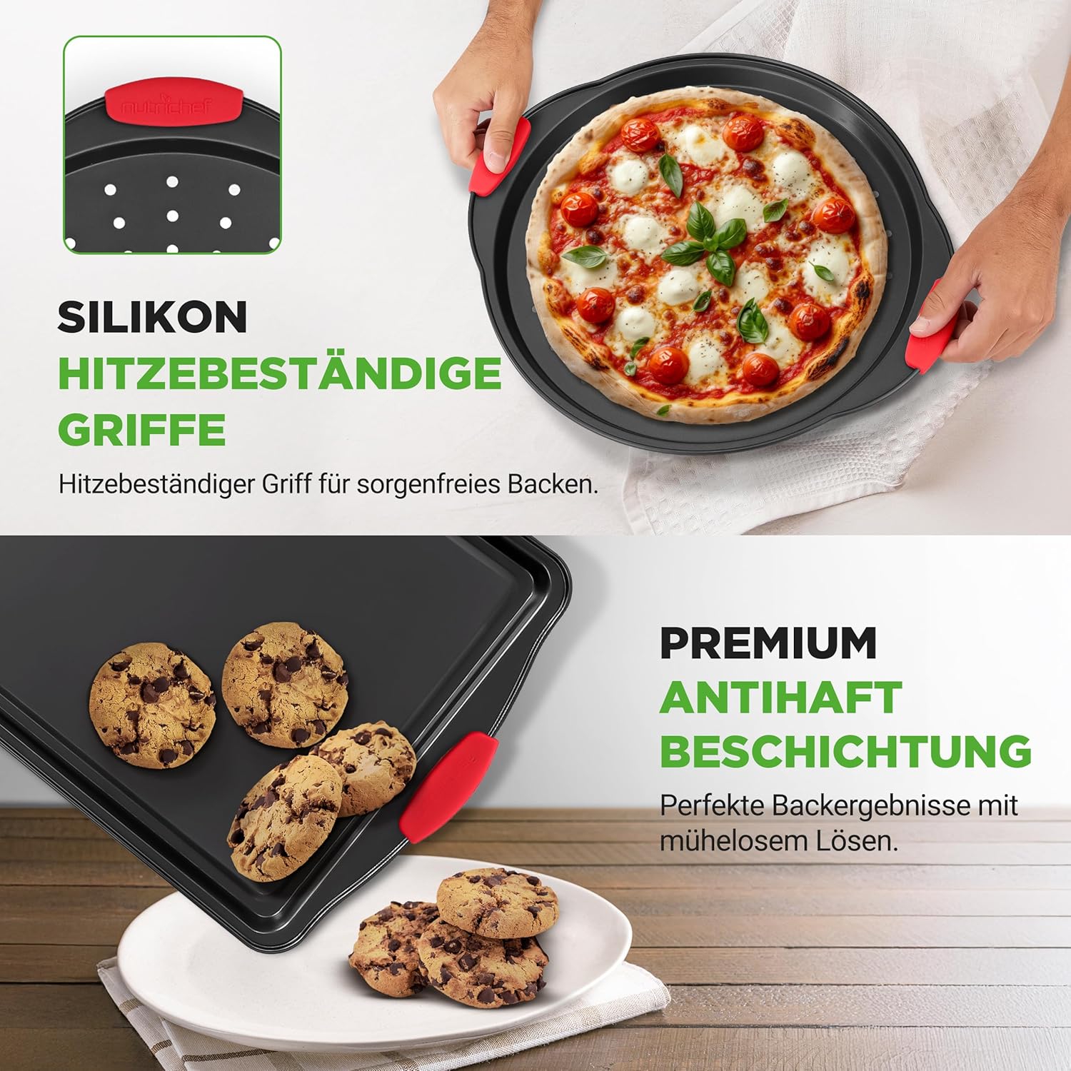 • Hitzebeständige Silikongriffe: Das Backgeschirr in Gastronomiequalität verfügt über rote Silikongriffe, um versehentliche Verbrennungen zu verhindern. Auch schmutzabweisend, leicht zu reinigen und spülmaschinenfest, aber Handwäsche wird empfohlen,