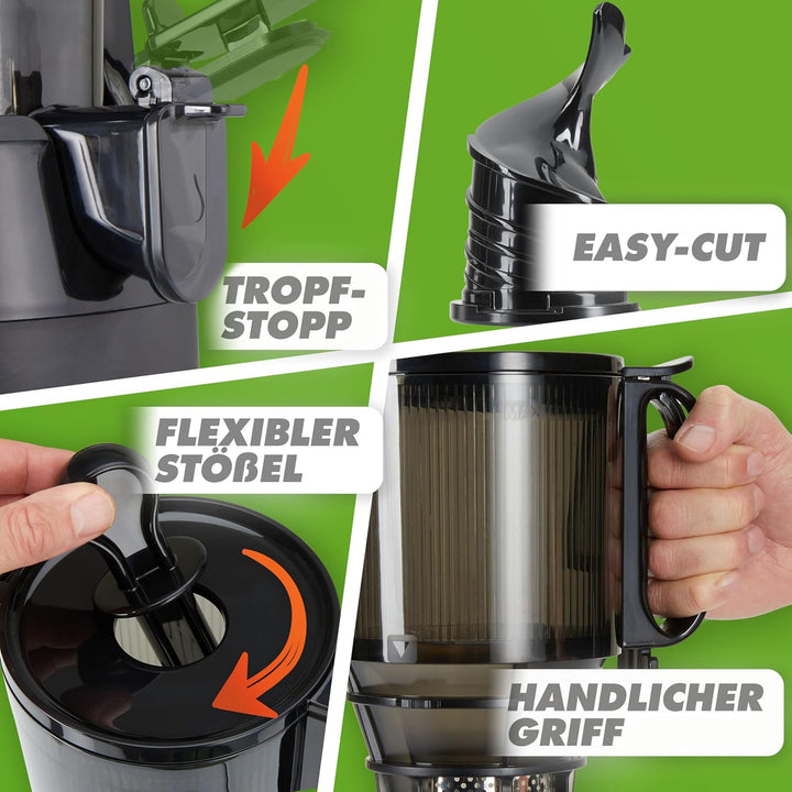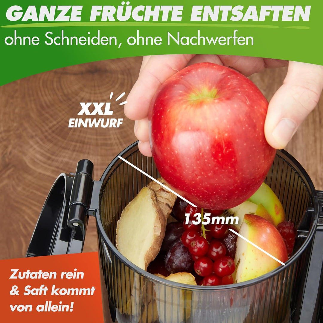 - Produkttyp: Entsafter Slow Juicer mit XXL Einwurf, Ganze FrΓΌchte entsaften, Saftpresse elektrisch, Obst und GemΓΌse Entsafter