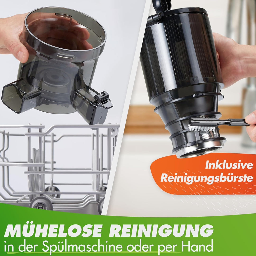 - β ππππ ππππ πππππππππ β Unser Slow Juicer ΓΌberzeugt nicht nur beim Entsaften von Obst und GemΓΌse, sondern auch bei der einfachen Reinigung hinterher. Da es nur 3 Hauptteile gibt, ist der Entsafter