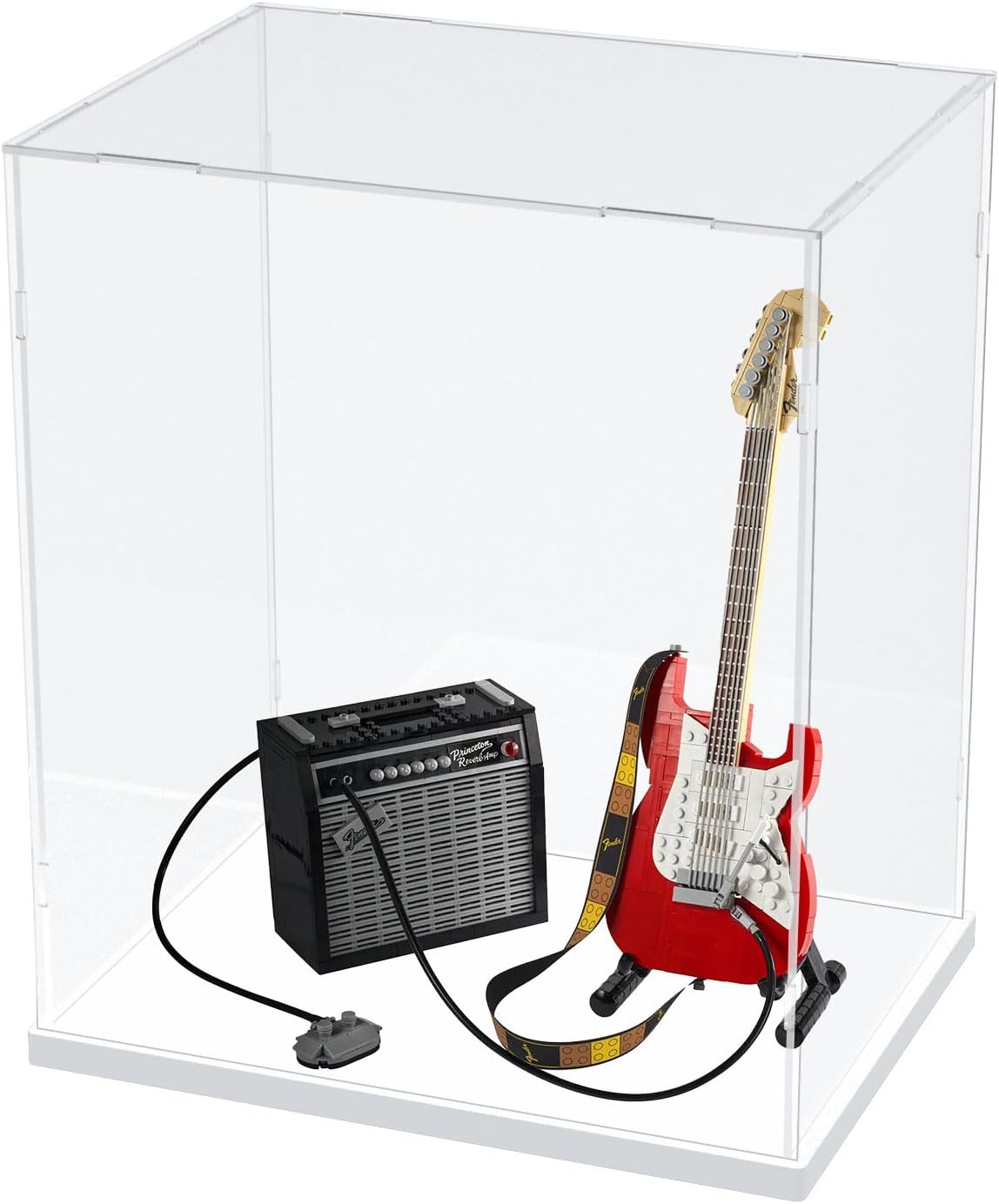 Nynelly Vitrine für Sammler, Vitrine aus Acryl für Figuren, transparente Acrylbox mit weisser Basis,