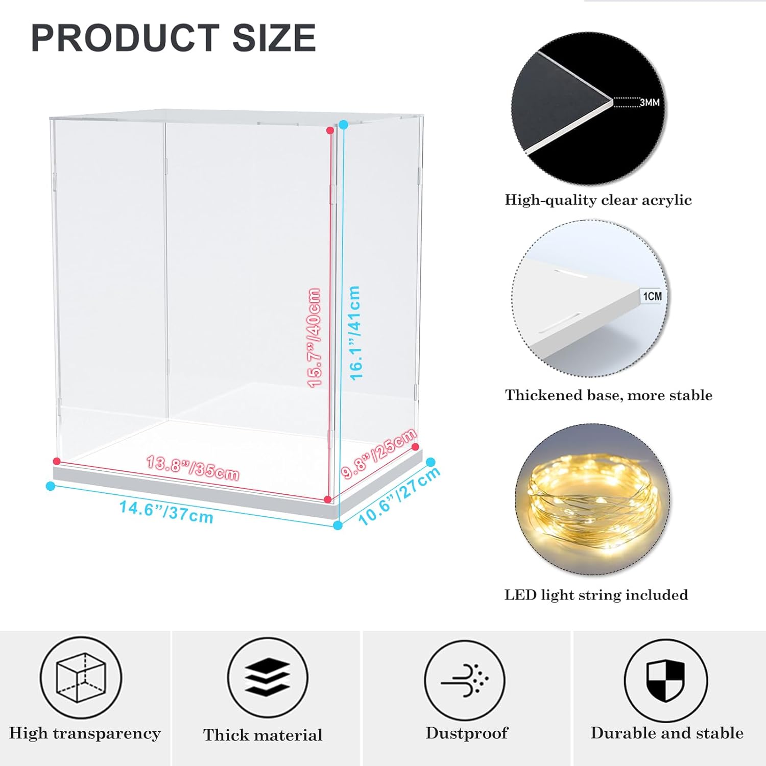 • Masse: Die Innenmasse der transparenten Acrylvitrine für Sammlungen betragen 35 x 25 x 40 cm. Bitte messen Sie die Grösse Ihrer Figur vor dem Kauf, um sicherzustellen, dass die Box die richtige Grösse für Ihre Sammlung hat.