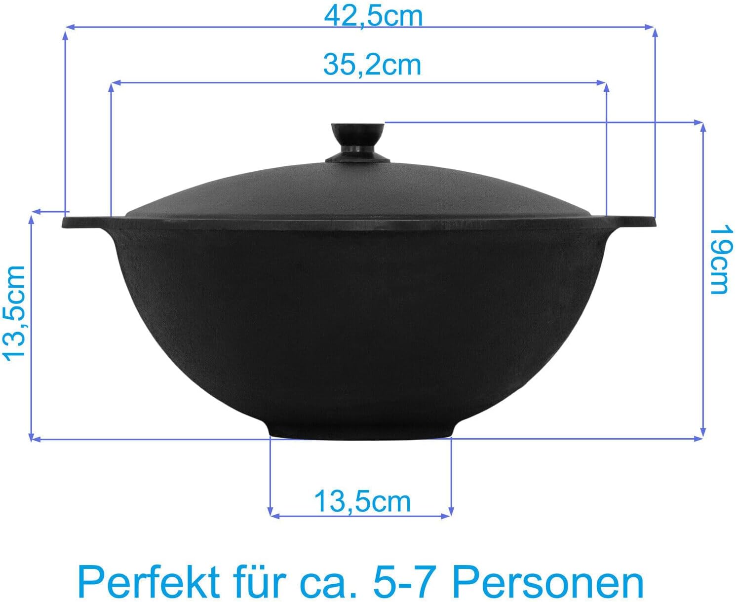 • Der Kazan wird manuell hergestellt. Der Deckel kann dadurch geringfügig abweichen. Der Kasan ist innen geschliefen und aussen extrem rau!