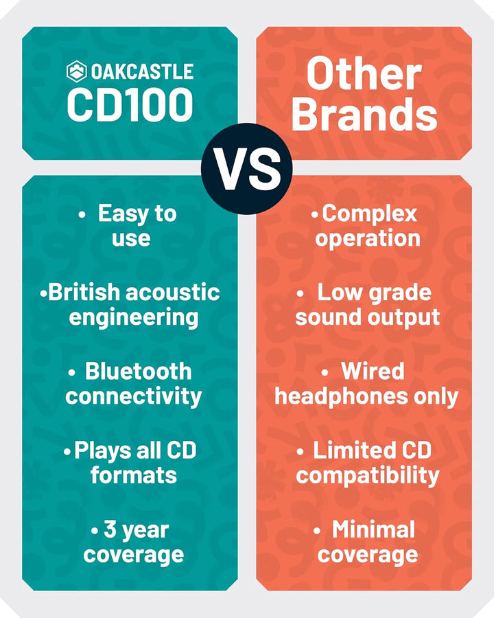 - IM AUTO VERWENDBAR, MIT BLUETOOTH UND EXTERNEN LAUTSPRECHERN KOMPATIBEL: Schliessen Sie den CD100 über AUX an Ihr Autolautsprechersystem an, verwenden Sie externe Lautsprecher, um Ihr Musiksystem zu Hause anzuschliessen, oder verwenden Sie ihn mit Bluetooth-Kopfhörern oder -Lautsprechern.