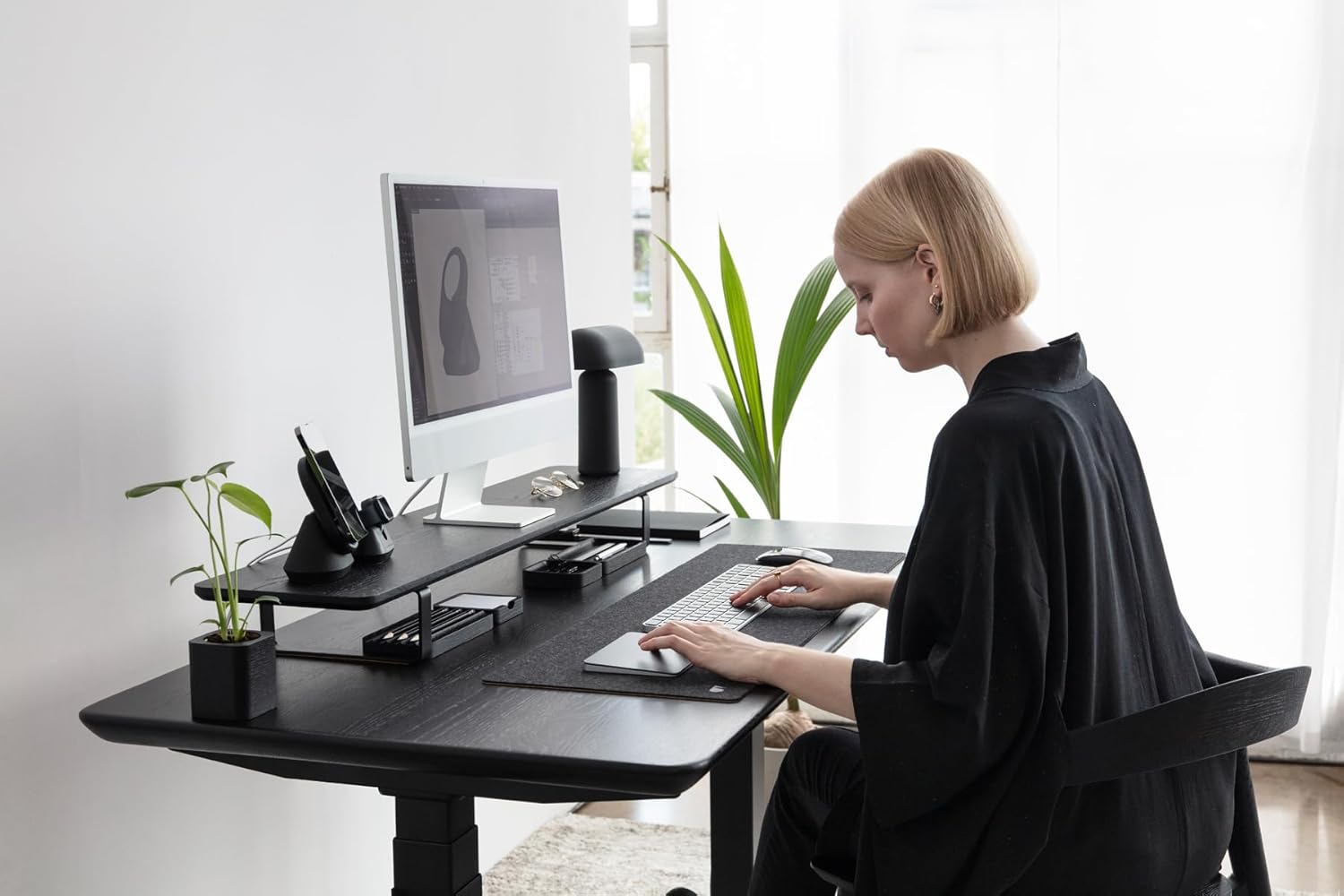 - Oakywood Dual-Monitorständer – PC-Zubehör – Computer-, Büro- und Heim-Schreibtisch-Organizer-Zubehör, ergonomische Positionierung, handgefertigt, 100 % Naturholz, schwarz gebeizte Eiche, 100 kg Tragkraft (220 lb) (41,3 x 9 Zoll)