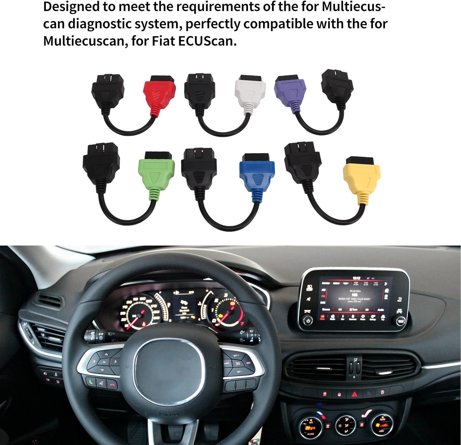 - Merkmal: Das Adapterkit enthält 6 OBD2 Diagnosekabel mit verschiedenen Steckerfarben, leicht zu identifizieren, erhältlich als MultiECUScan Softwareersatz für Fahrzeuge der Fiat Gruppe.
