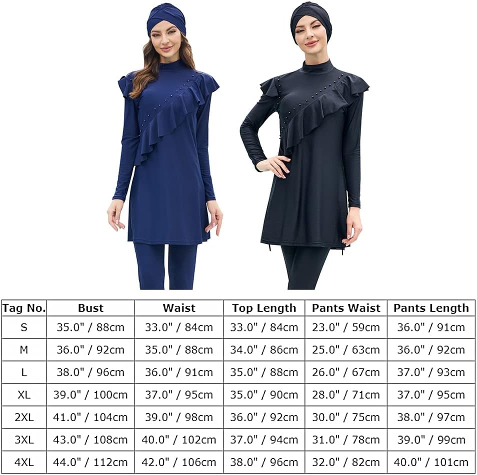 - TOP: Langarm Burkini Badeanzug für Frauen, Langarm Badetops, O-Ausschnitt, gestufter Rüschensaum, gibt Ihnen eleganten und schicken Look, Pullover-Stil, einfach und bequem an- und auszuziehen.