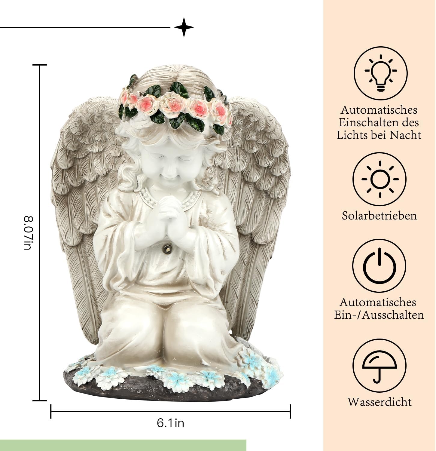 • 【Solarladung】Diese Engel Gartenstatuen sind mit einer innovativen Sonnenlichtabsorption ausgestattet, die es ihnen ermöglicht, tagsüber aufzuladen. Bei Einbruch der Dunkelheit schalten sie sich automatisch ein und schaffen eine wunderschöne,