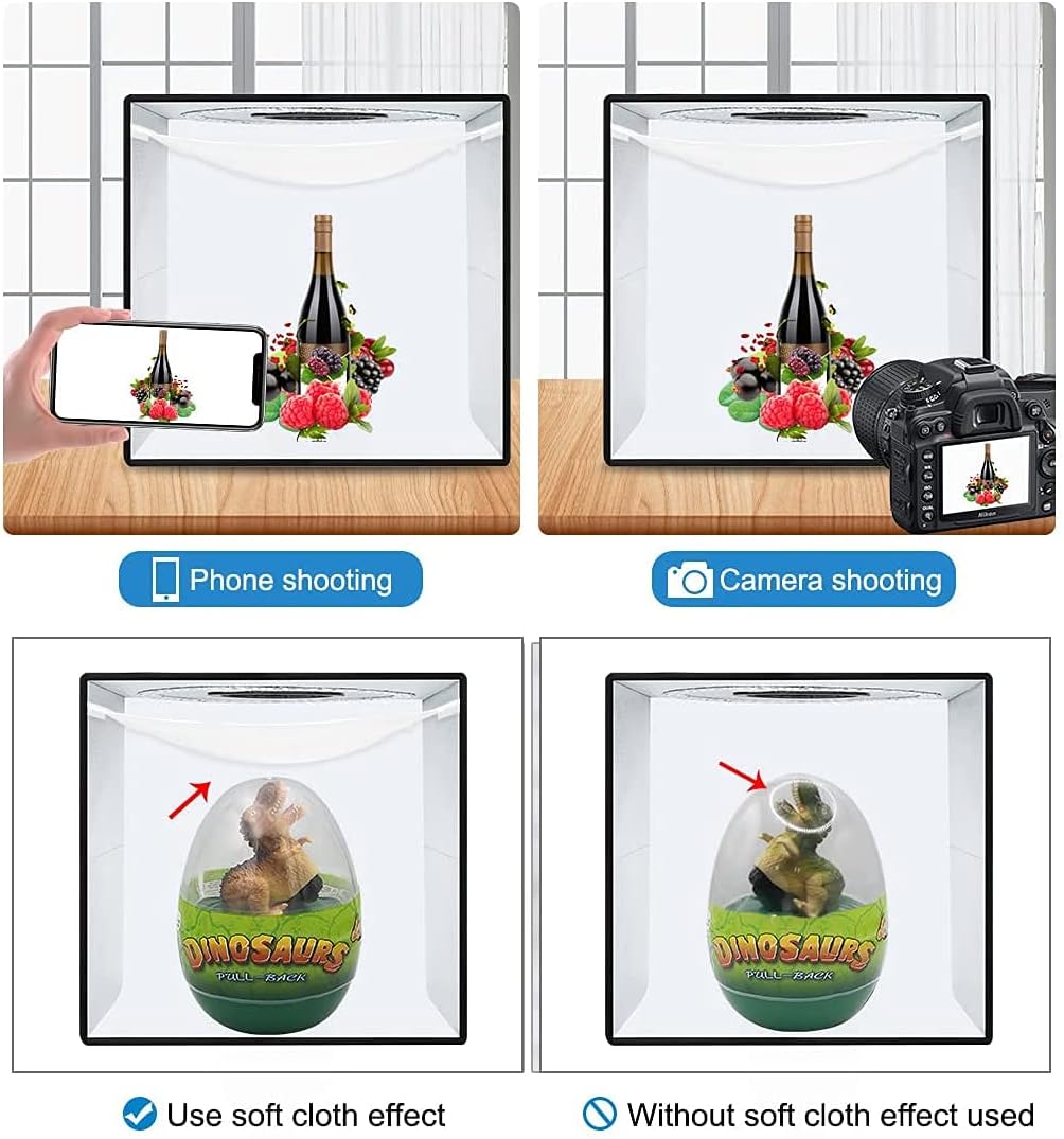 - 【Professionelle Einrichtung】Der silberne reflektierende Stoff im Inneren kann das Licht gleichmässig streuen und verhindert Vignettierung. Das unabhängige weiche Lichttuch ist mit Klettverschluss befestigt, um unnötige Schatten und Reflexionen zu