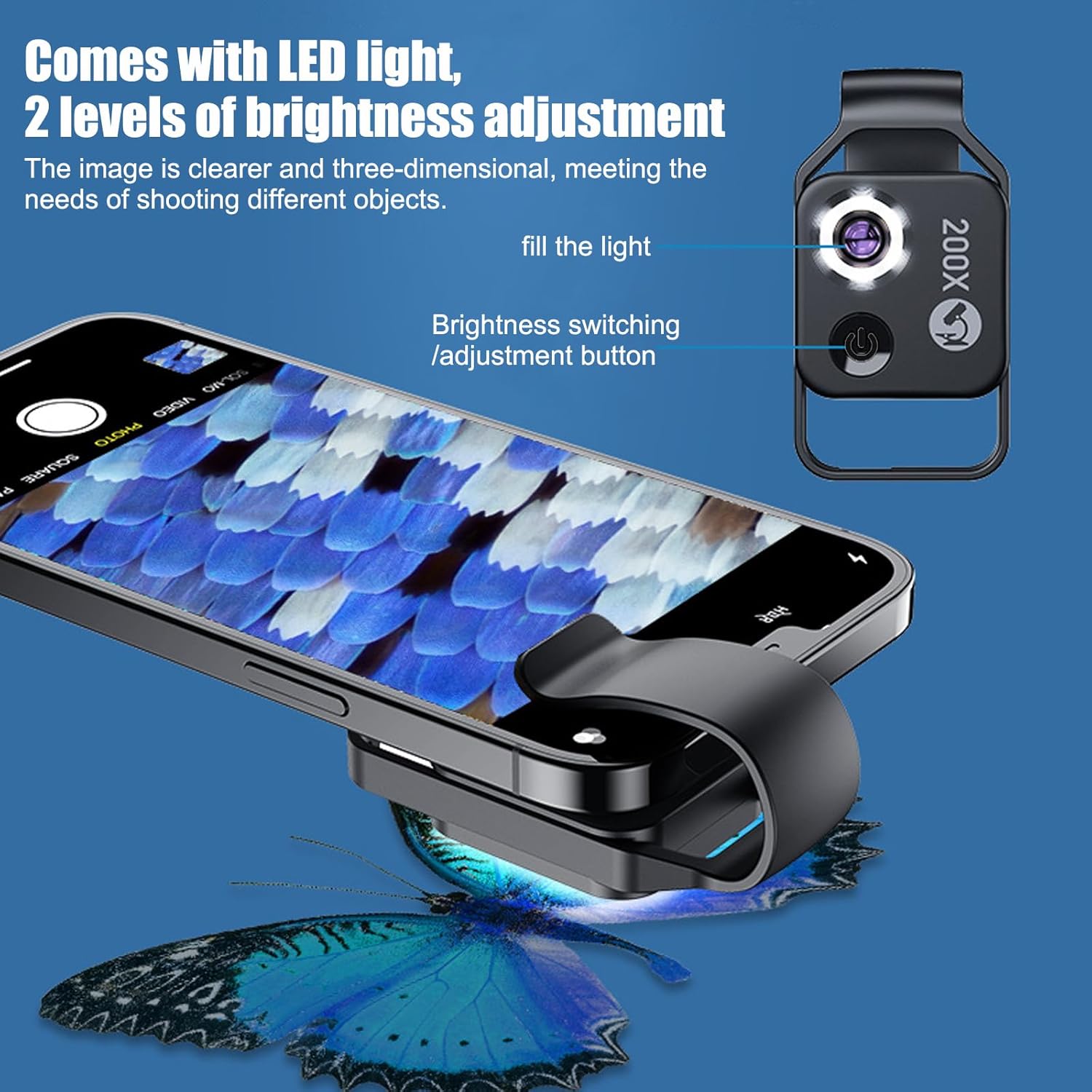 • 200x Taschenmikroskop: Wenn Sie ein Handy-Ansteckmikroskop mit höherer Vergrösserung benötigen, aber gleichzeitig ein Mikroskop, das klein ist, aber eine Einschubvergrösserung hat, ist dieses Kindermikroskop die perfekte Wahl. Dieses Handymikroskop