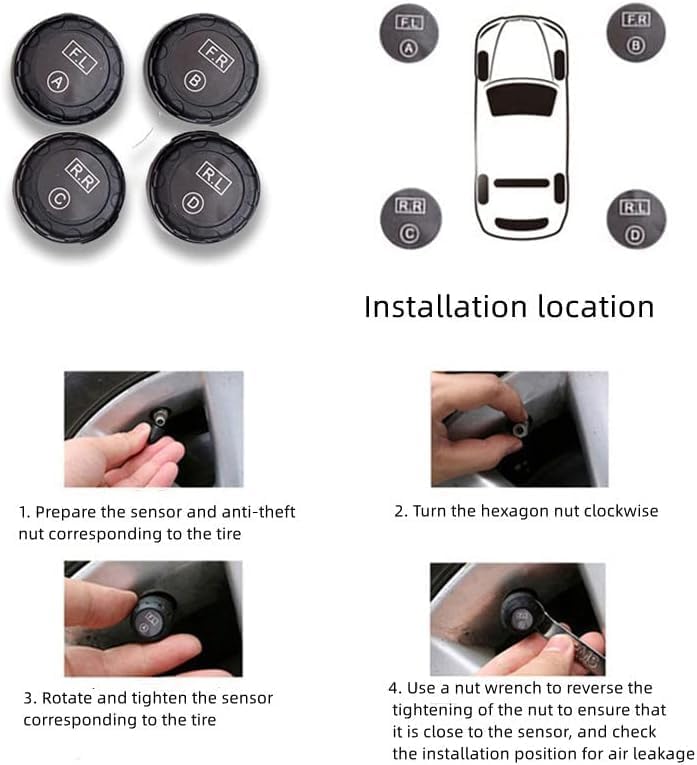- {Echtzeitüberwachung}: TPMS überwacht den Reifendruck- und Reifentemperaturstatus in Echtzeit. Wenn der Reifen anormal ist, werden eine Sprachwarnung und ein blinkendes Warnsymbol angezeigt. Gewährleistet ein komfortables und sicheres Fahren für den