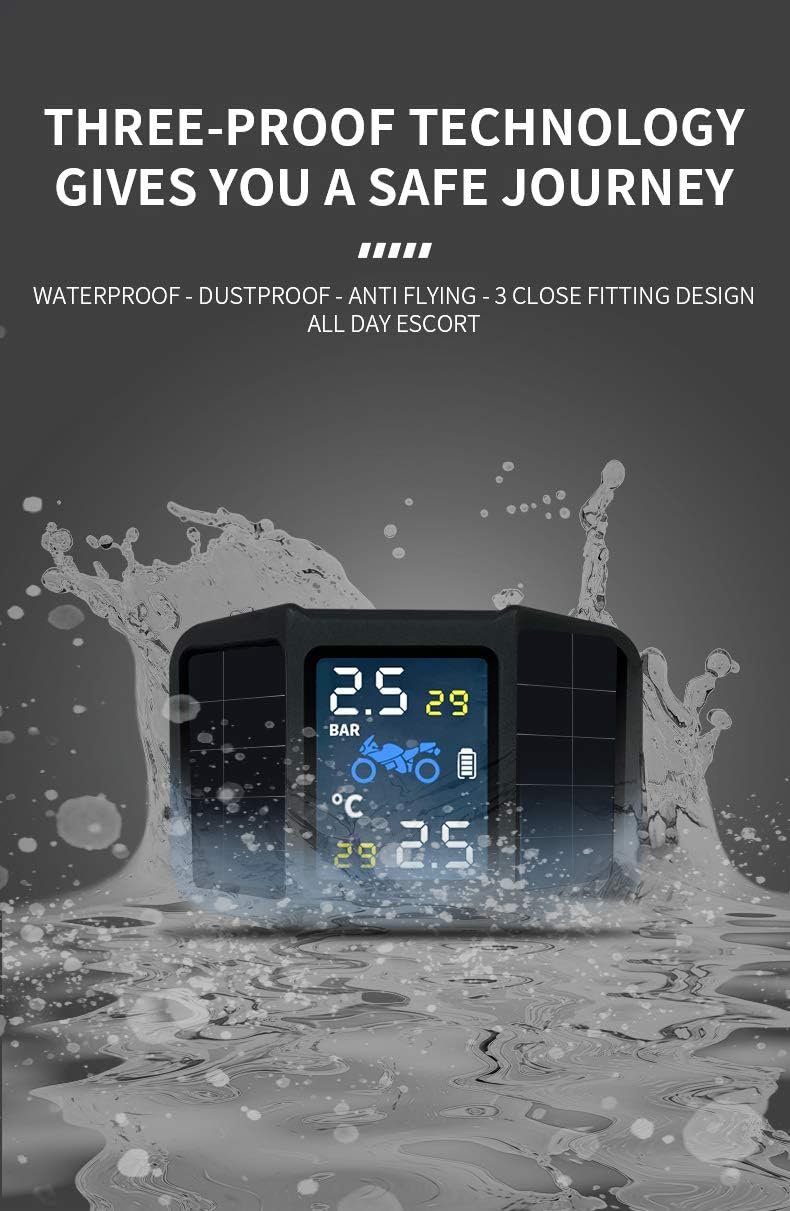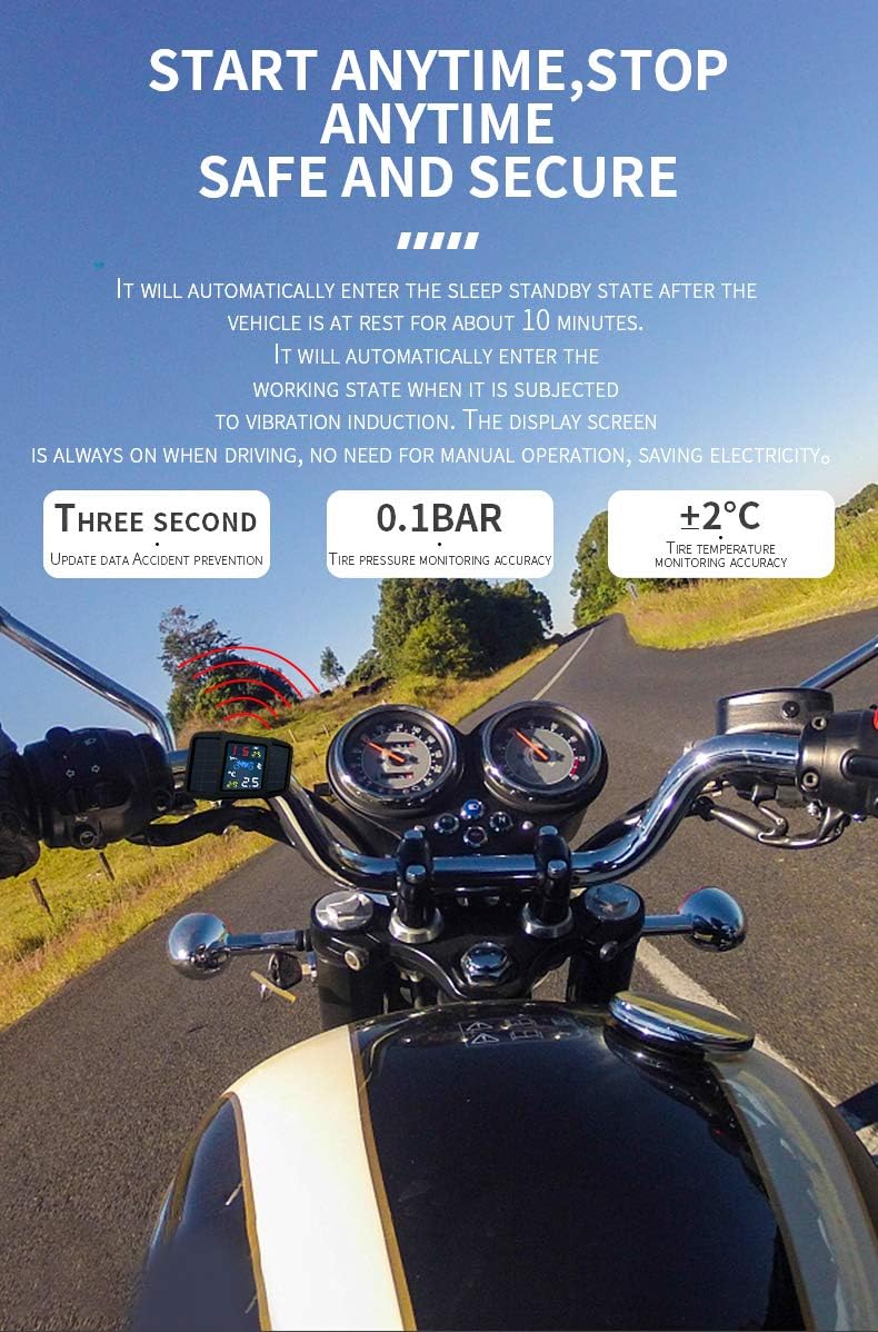 - MOTORRAD-REIFENDRUCKÜBERWACHUNGSSYSTEM: Die Reifendrucküberwachung überwacht die Reifen in Echtzeit, aktualisiert die Daten alle 3 Sekunden und gibt rechtzeitig einen Alarm aus, um Notfälle zu vermeiden. Es kann die Kraftstoffeffizienz verbessern,