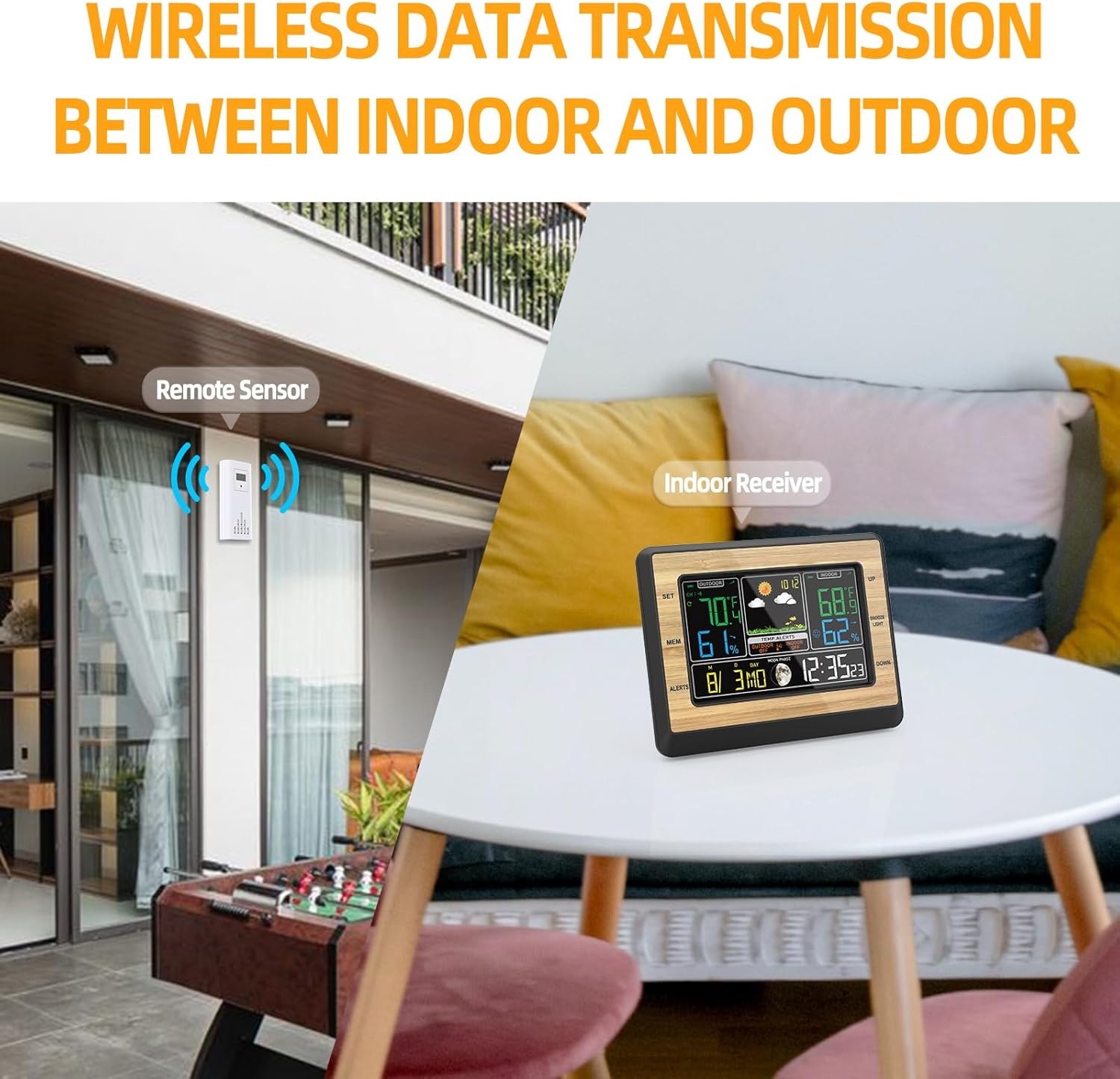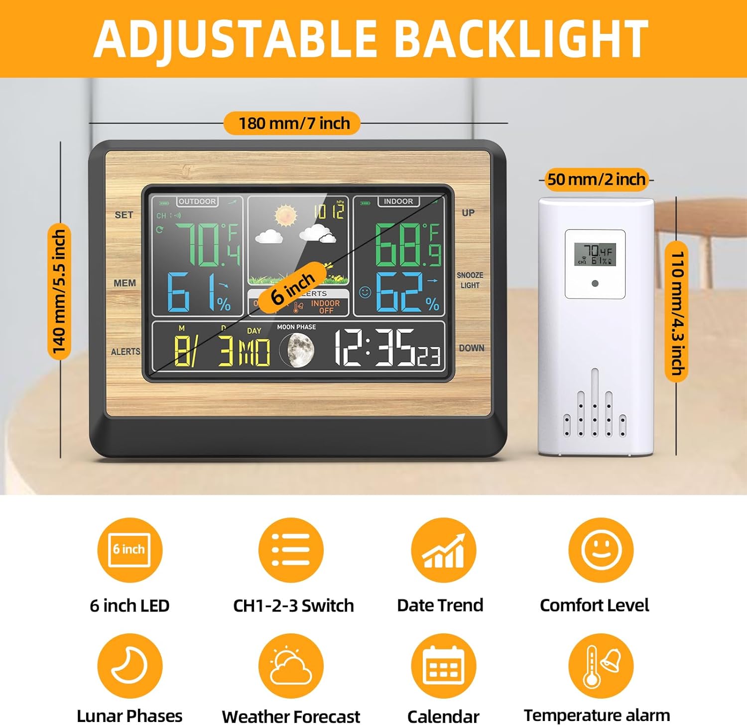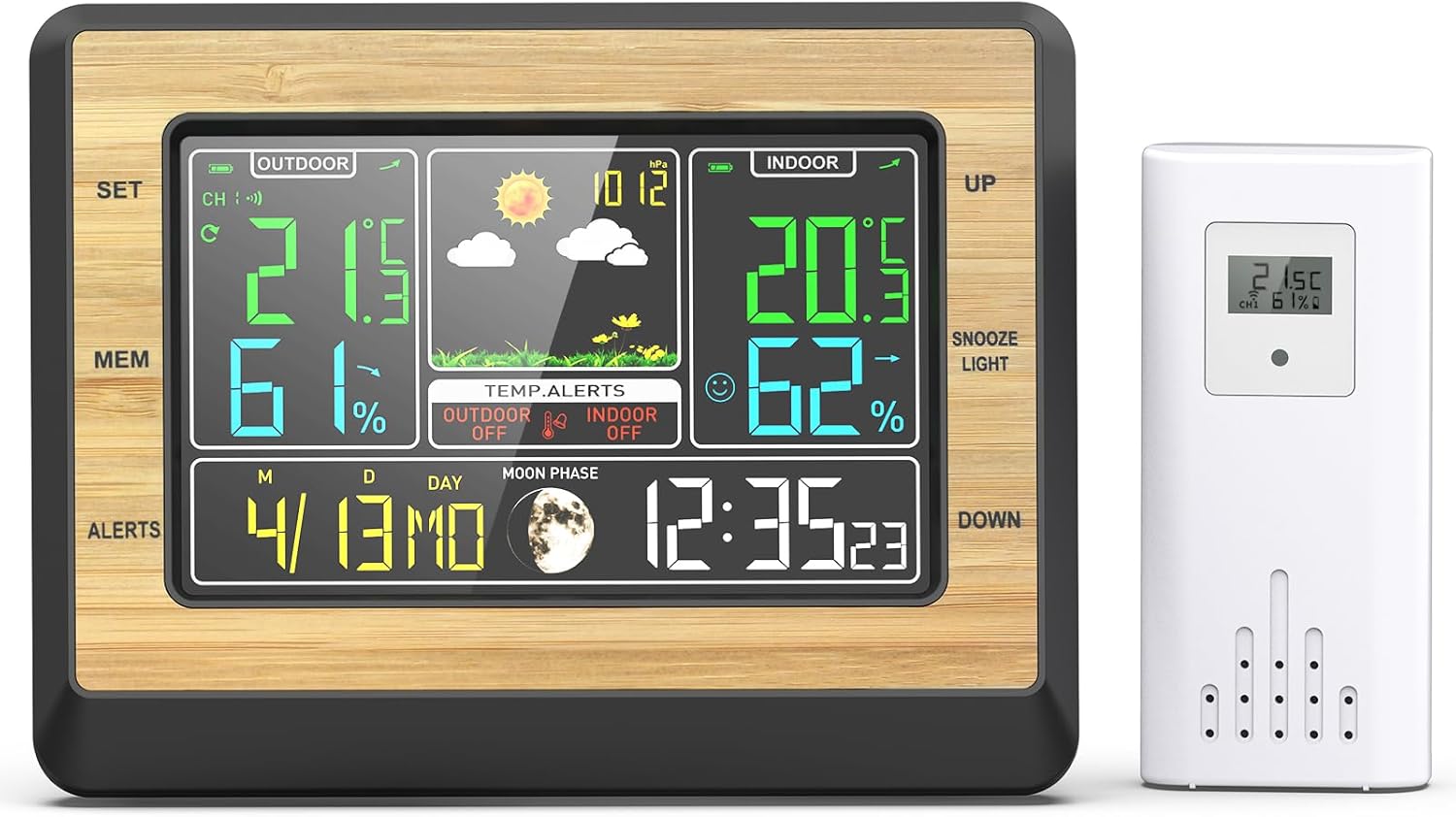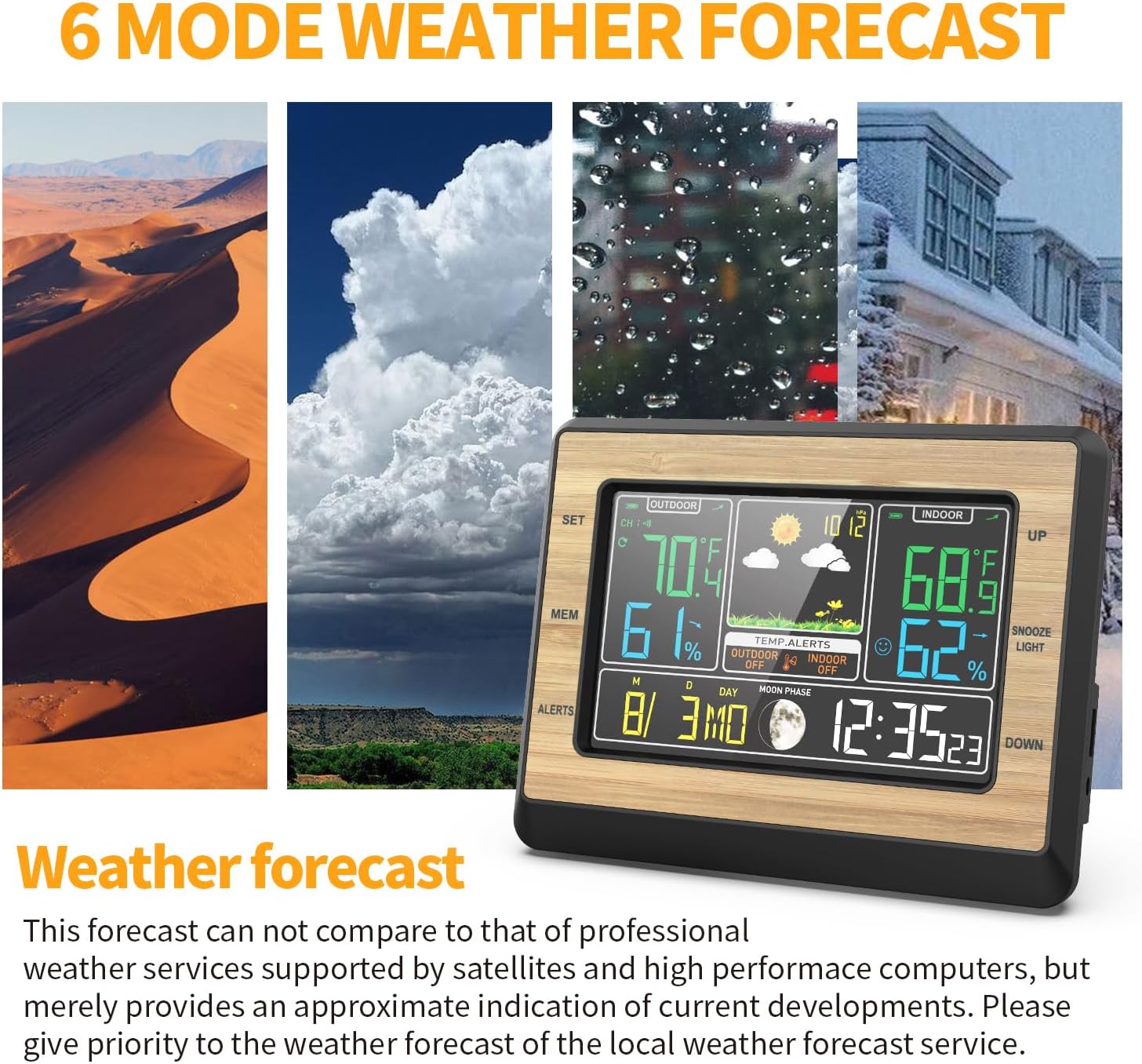 - [Flexibles Design] Automatische oder manuelle Zeiteinstellung; Zeit kann aus 12/24 Stunden Format und Zeitzone gewählt werden; Die Wetterstation hat einfache Ein/Aus- und Schlummerfunktionen, die perfekt den Wecker in Ihrem Schlafzimmer ersetzen