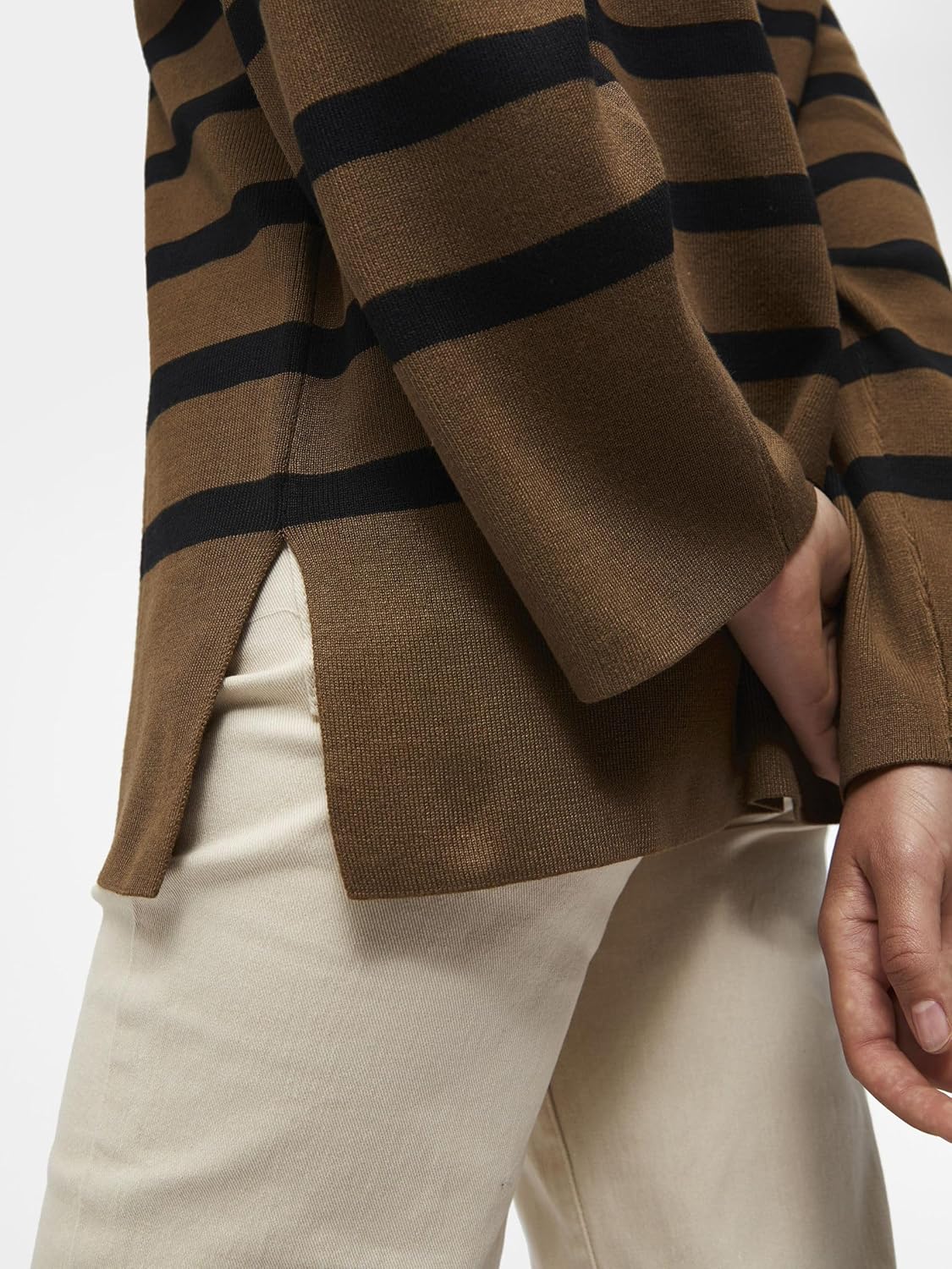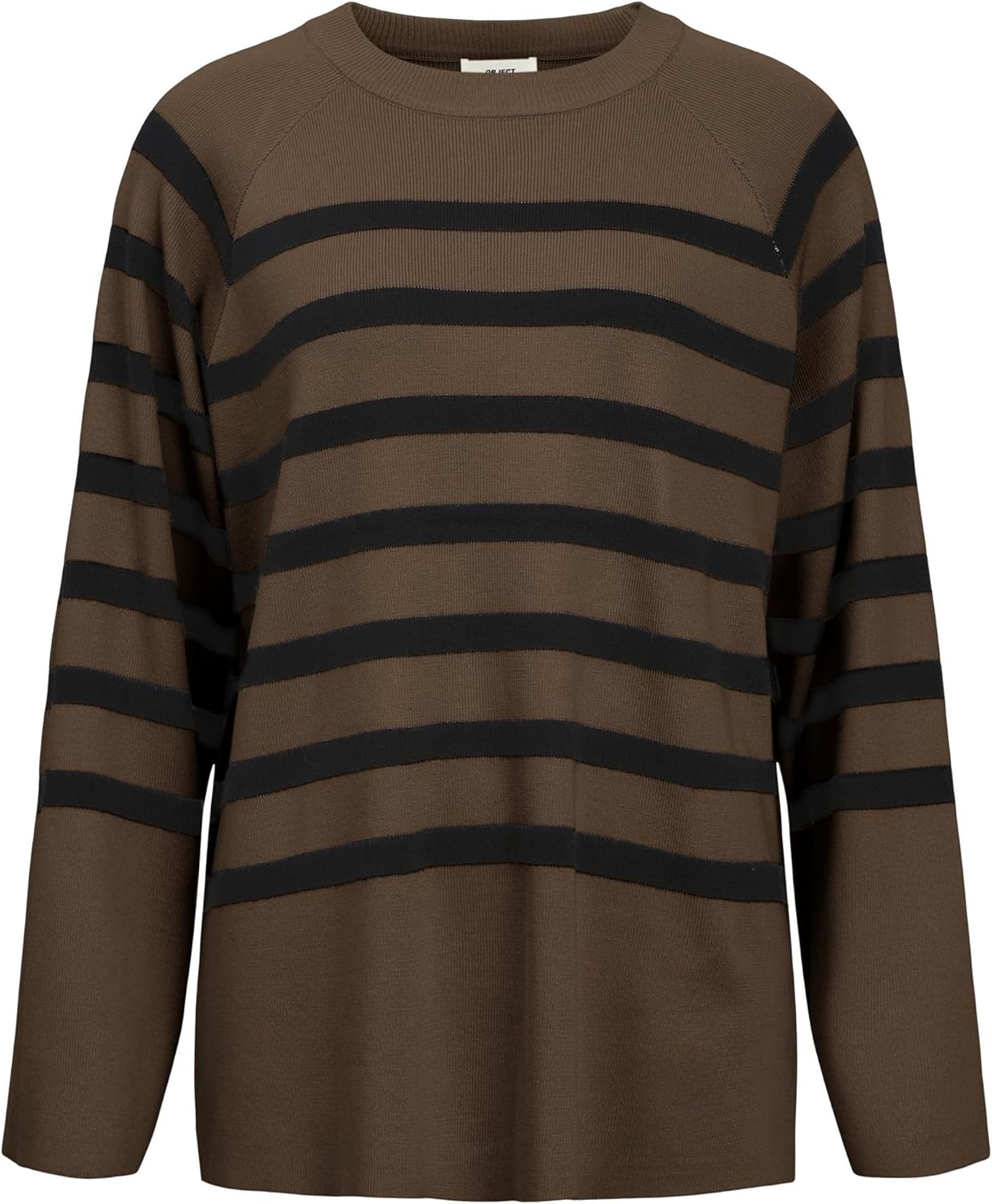 - Strickpullover für Damen, Rundhals-Ausschnitt, Bündchen-/Rippstrick-Kragen, lockere Passform, seitliche Schlitze