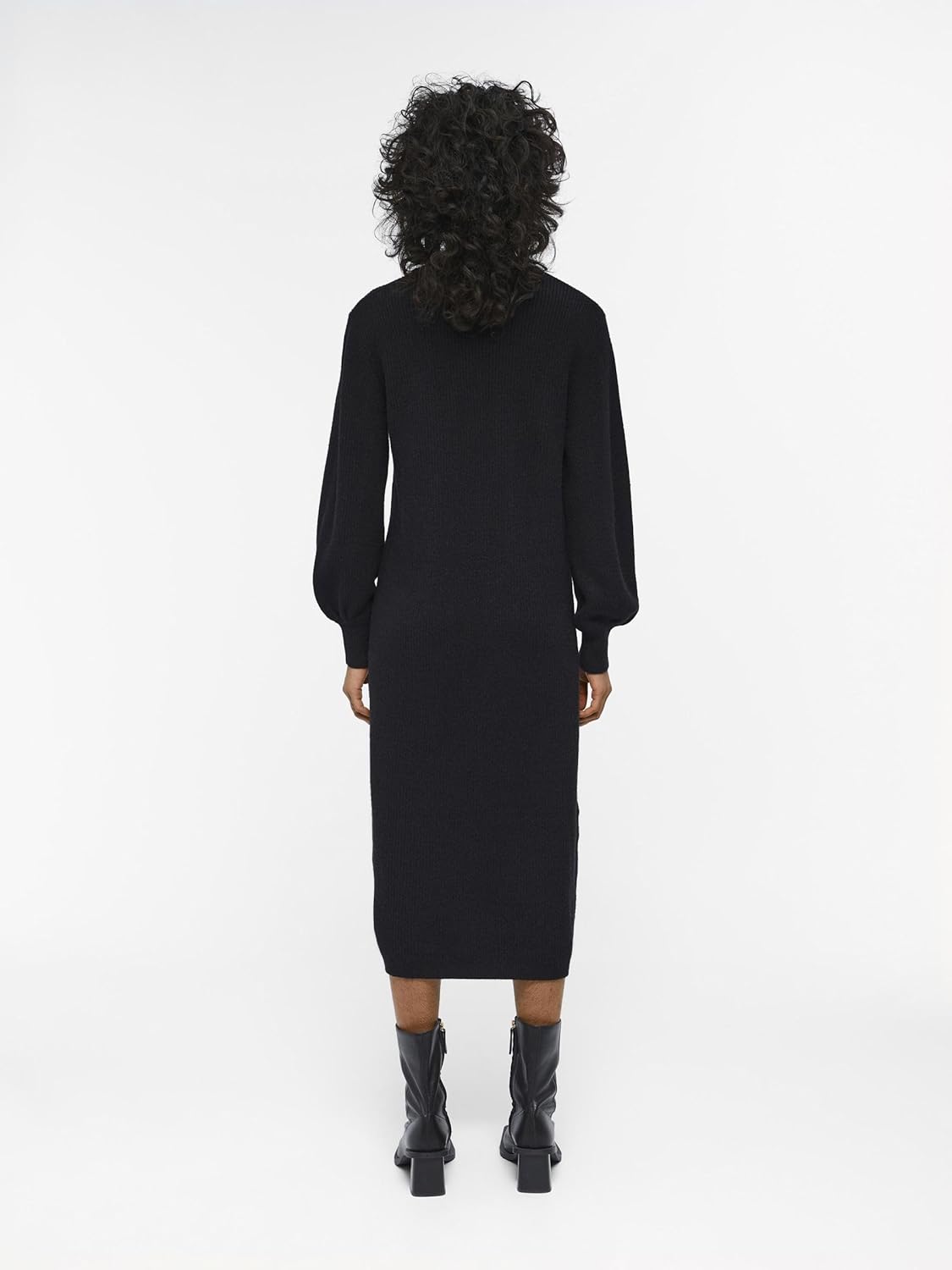 PRODUKTBESCHREIBUNGEN Strickkleid in Midi-Länge von OBJECT, lange Ballonarme, V-Ausschnitt, weiche Qualität mit 50% Viskose, rund geschnittener Rocksaum, breite Strickbündchen an den Handgelenken