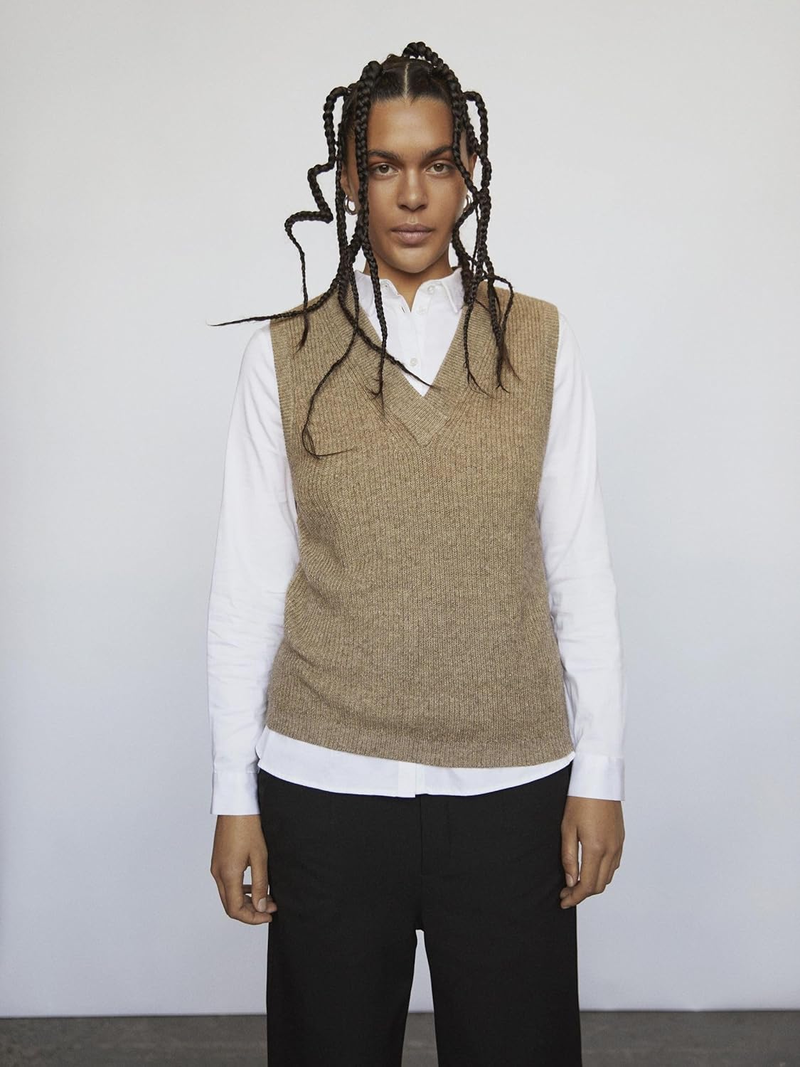 Object Damen Objmalena S/L Knit Waistcoat Noos Pullunder XS Fossil, XS Fossil