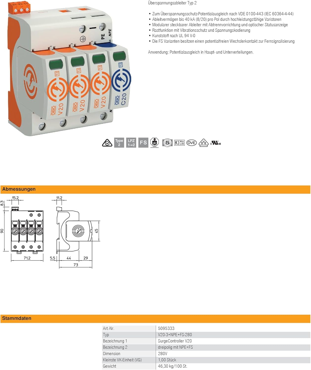 SurgeController V20 dreipolig mit NPE+FS BETTERMANN V20-3+NPE+FS-280