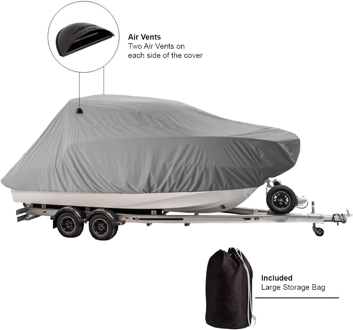 • Zwei Luftventile sorgen für eine gute Luftzirkulation unter der Abdeckung. 6 mm Seil im Saum, Seilratsche zum einfachen Festziehen der Abdeckung.
