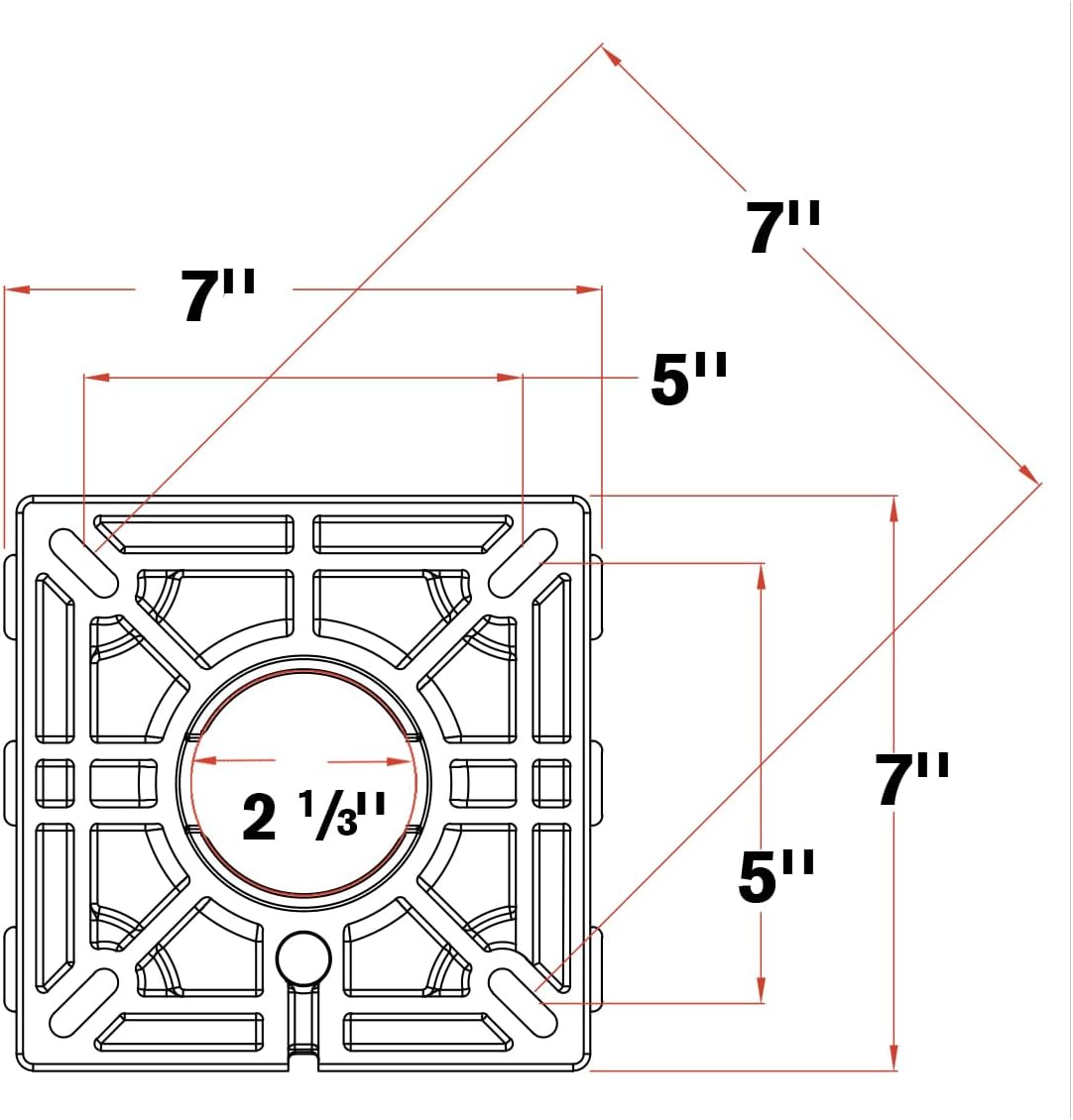 - Pulverbeschichteter Fuss aus Aluminium (230mm Durchmesser).