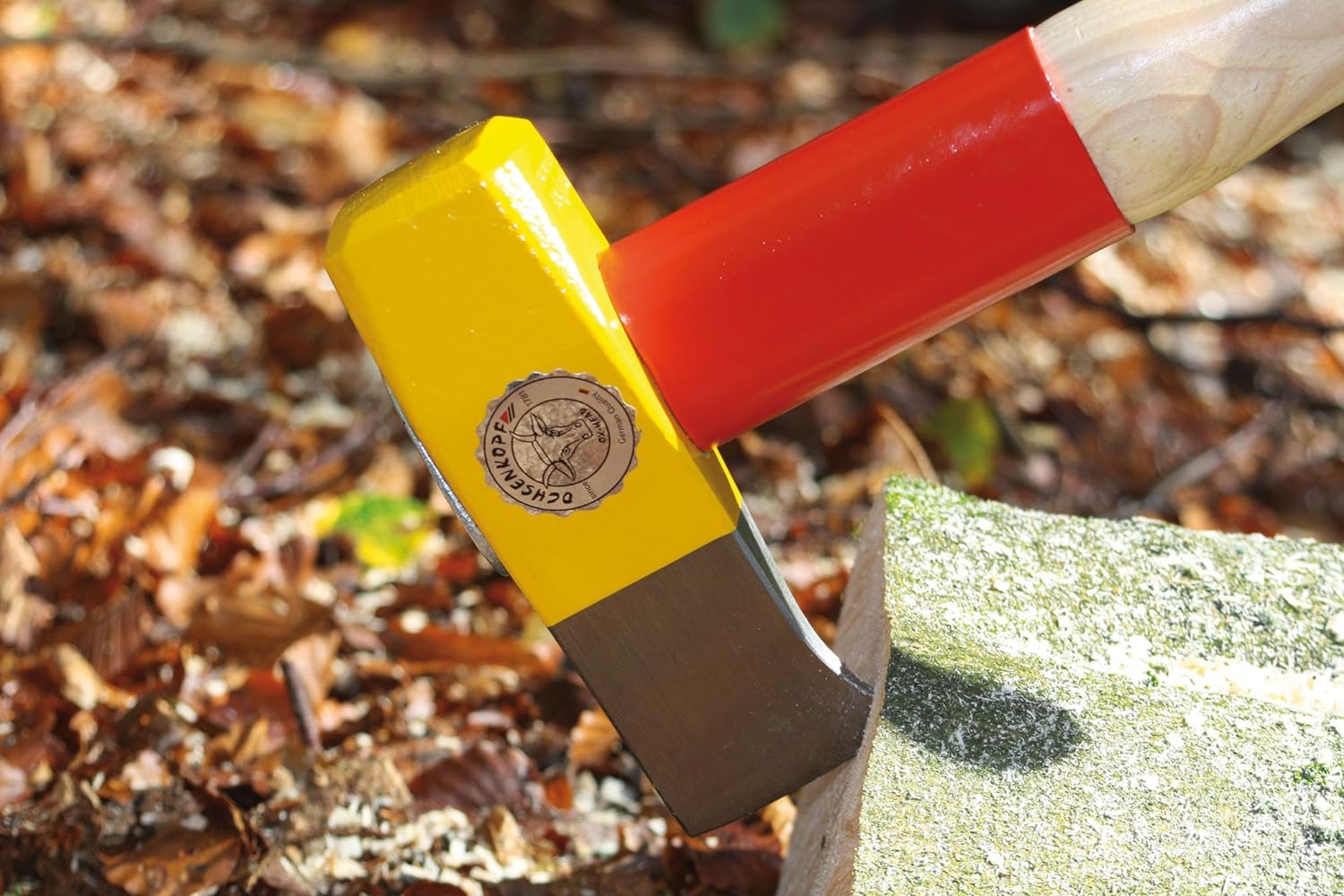 - Produkt 1: Feste Verbindung zwischen Stiel und Axtkopf dank Ringkeil mit Widerhaken, Sicherungsplatte und -schraube, Für ein sicheres Arbeiten in Wald und Garten