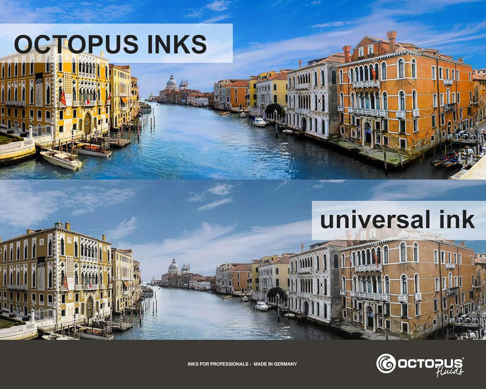 - MADE IN GERMANY Die Entwicklung und Herstellung dieser Tinte erfolgt im Labor der Octopus Fluids GmbH & Co. KG.