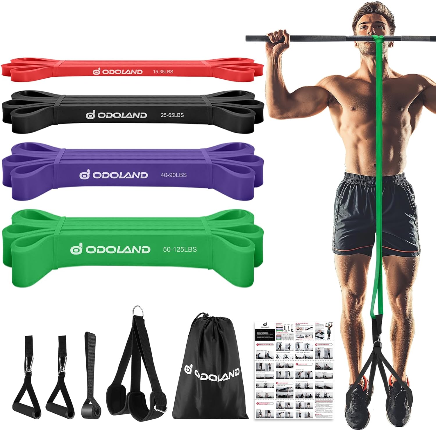 - 💪【4 verschiedene Leistungsstufenbänder】4 verschiedenfarbige Gymnastikbänder: Rot 15-35LB, Schwarz 25-65LB, Lila 40-90LB, Grün 50-125LB. Benutzer können sie einzeln oder in Kombination nach ihren Bedürfnissen verwenden und die Intensität des