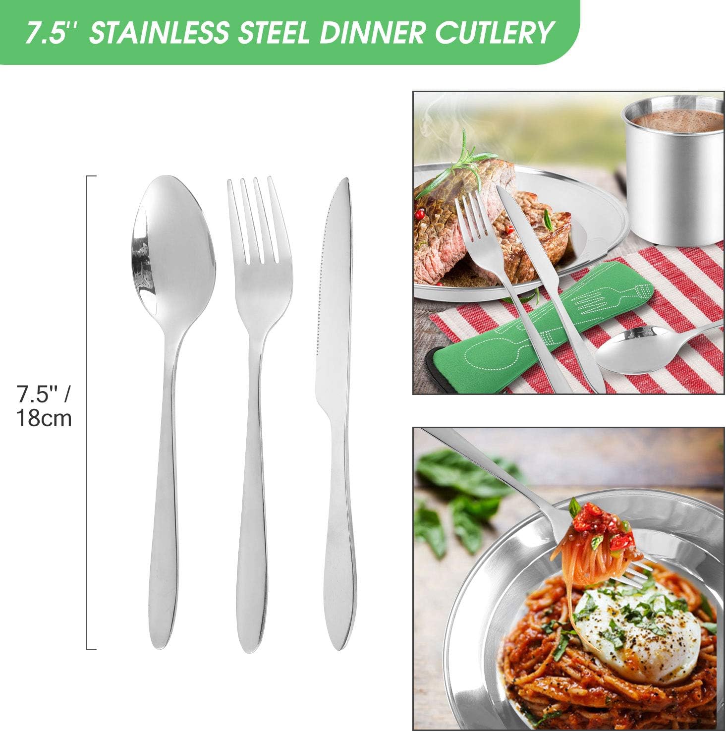 - ♨ 【 LANGLEBIGE QUALITÄT und SICHER】 Outdoor Reisebesteck besteht aus hochwertigem Edelstahl für maximalen Luxus und lange Lebensdauer. Im Gegensatz zu den Plastiksets ist färbt nicht und absorbiert keine Gerüche.