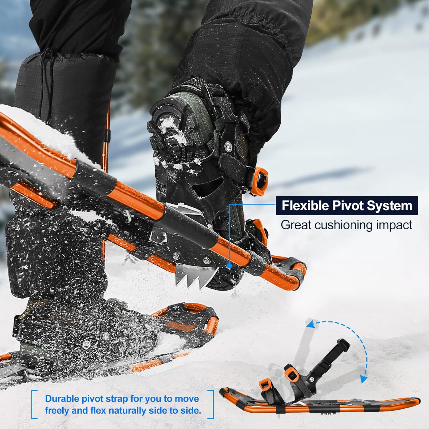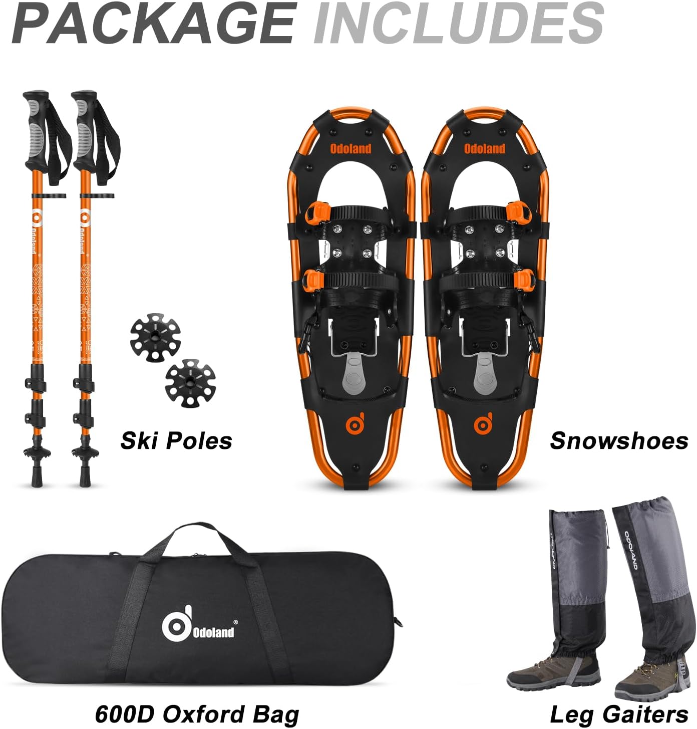 - ☃【4 IN 1 Schneeschuhe Set】Schneeschuhe Set enthält 1 Paar Schneeschuhe, 1 Paar Trekkingstöcke, 1 Paar Gamaschen für Schneebeine und 1 Tragetasche. Schneeschuhe ist aus leichten, hochwertigen Materialien gefertigt, um eine einfache Handhabung zu