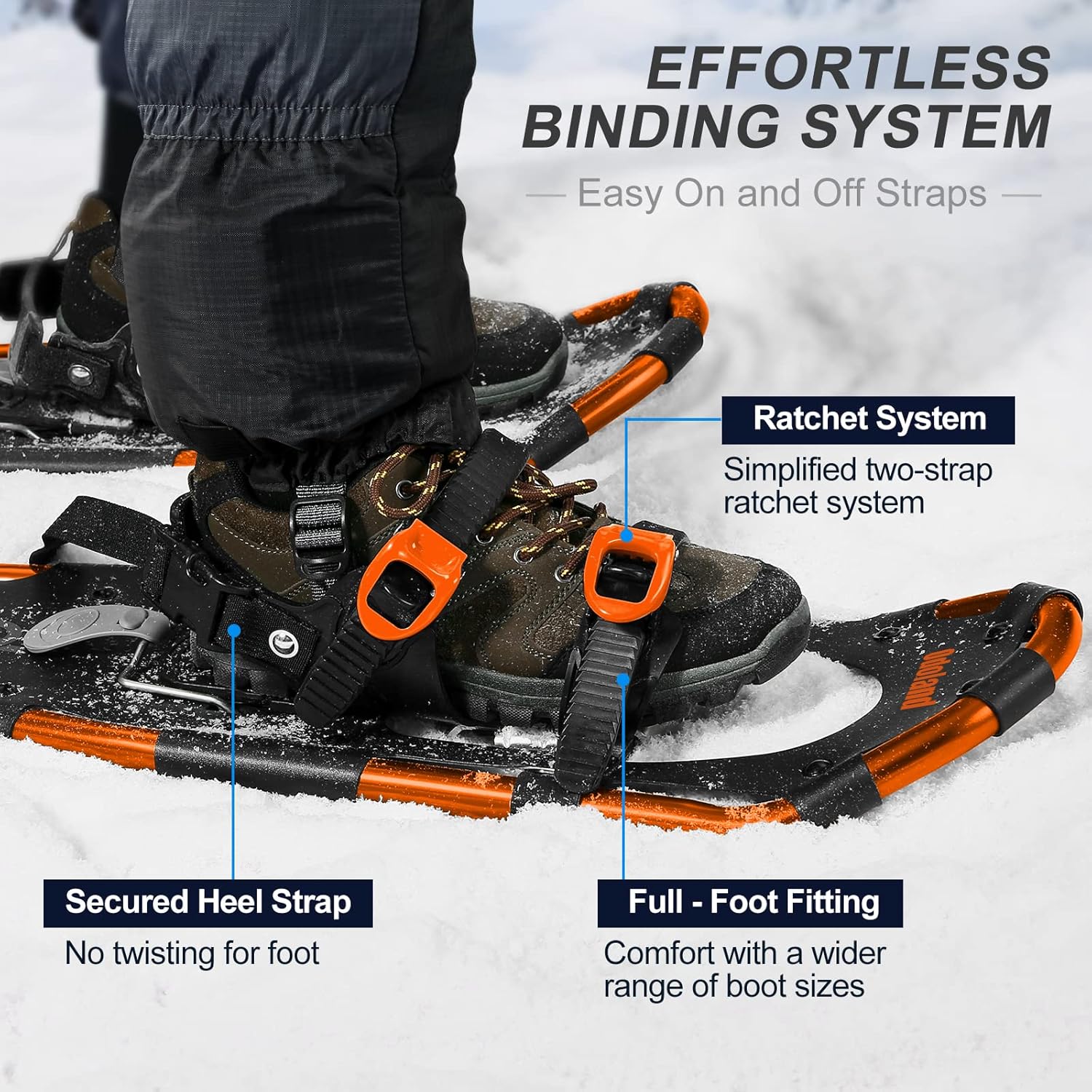 - ☃【Leichte und einfache Schneeschuhe】Die Schneeschuhe bestehen aus einem leichten und stabilen Aluminiumrahmen und sind ergonomisch geformt, um ein bequemes und einfaches Gehen zu gewährleisten. Mit den verbesserten Doppelratschenbindungen lässt