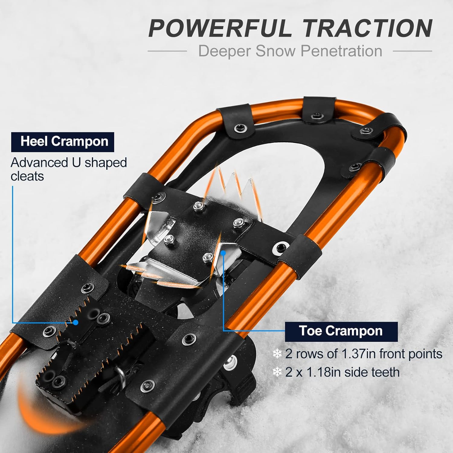 - ☃【Design der Steighilfe】Die flache Oberfläche des Aluminiumrahmens des Schneeschuhs ist schwimmfähig. Jeder Stiefel verfügt über zwei verstärkte, robuste Zacken für eine starke Traktion; Steighilfen, die den Aufstieg auf Schneeoberflächen