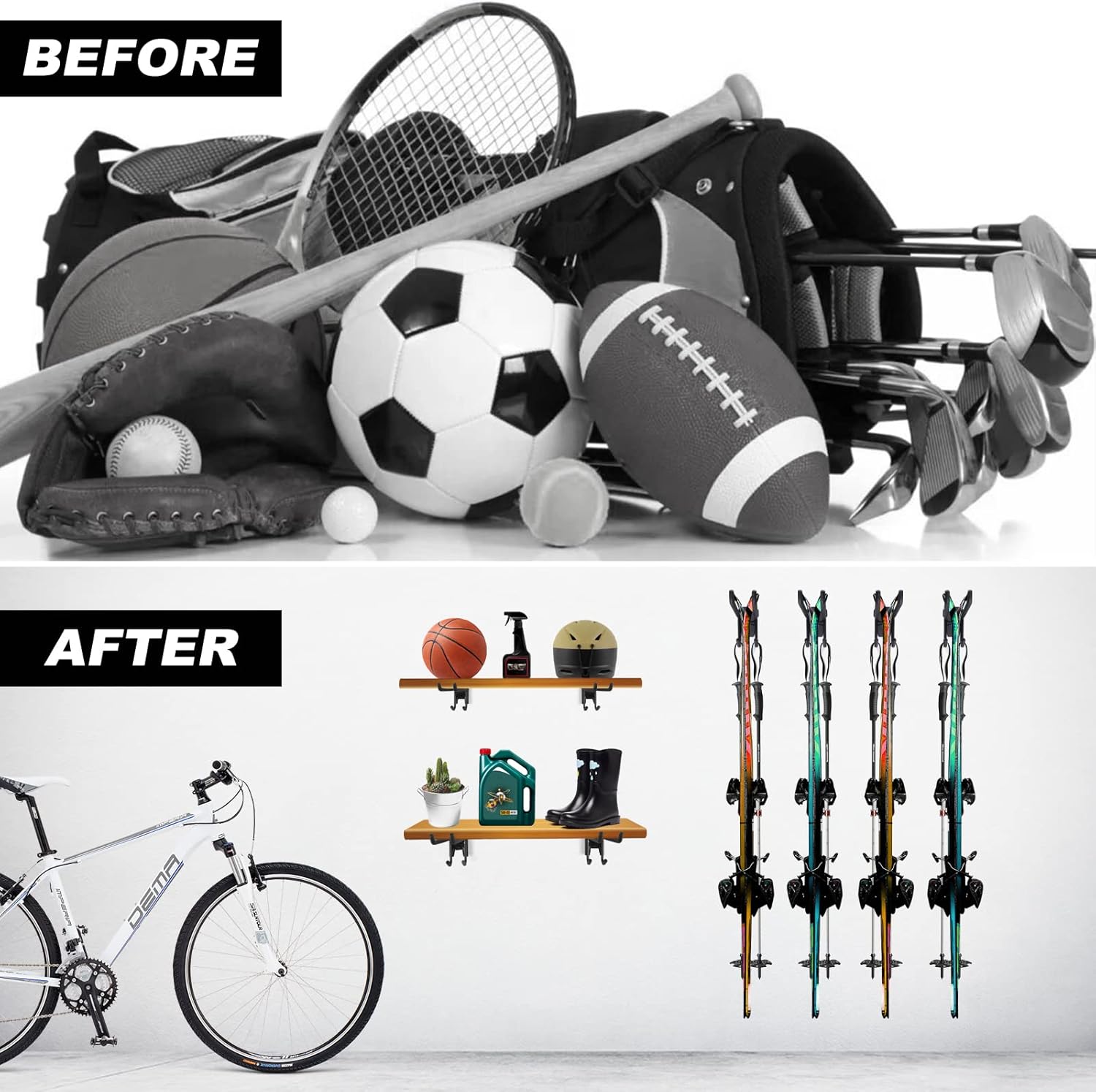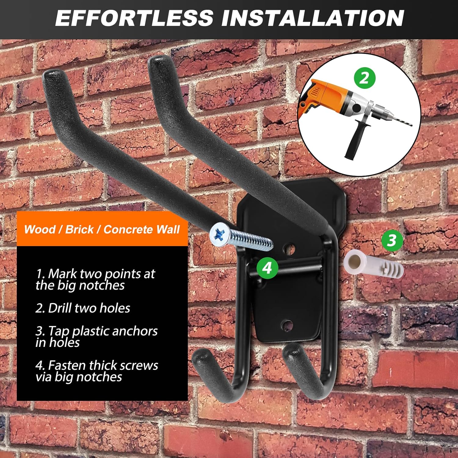- ◈4 PACK HEAVY DUTY HOOKS FÜR MEHRFACH - Die hochwertigen Doppelhaken aus Hochleistungsmetall können verschiedene Werkzeuge sehr robust halten, darunter Snowboard, Schaufel, Besen, Elektrowerkzeuge, Fahrrad, Unkrautfresser, Leiter usw.