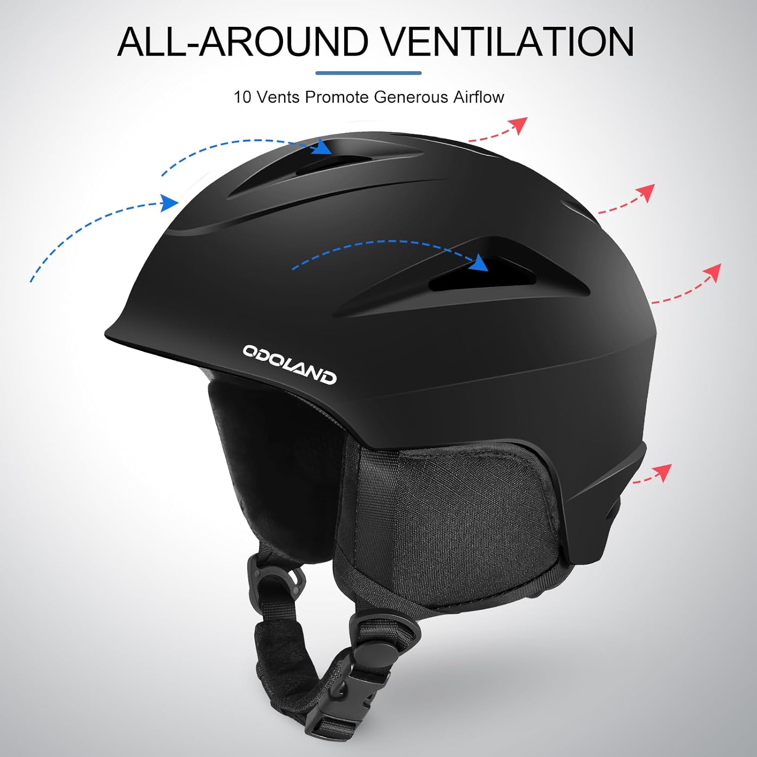 - ⛷️GREAT FÜR ALLE SCHNEE-SPORTARTEN - Odoland Skihelm mit Brille ist die perfekte Wahl für jeden, der Schneesport liebt. Der Skihelm bietet kompletten Schutz und ein angenehmes Tragegefühl beim Skifahren, Skaten, Snowboarden oder anderen