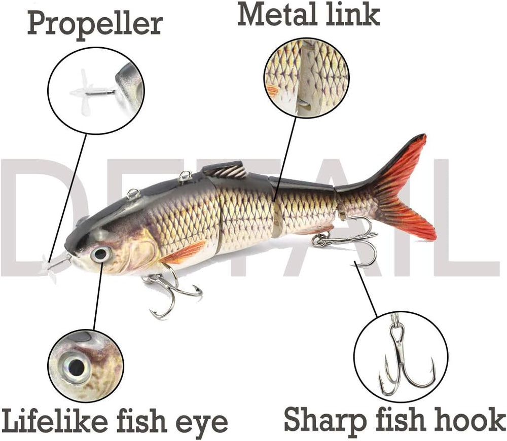- Ausgestattet mit 2 scharfen und langlebigen Angelhaken, um Ihnen zu helfen, die Fische wie Bass Forelle Hecht gelb Zander und so weiter zu fangen. Elektrisch schwimmender Angelköder kann im Süss- und Salzwasser verwendet werden.