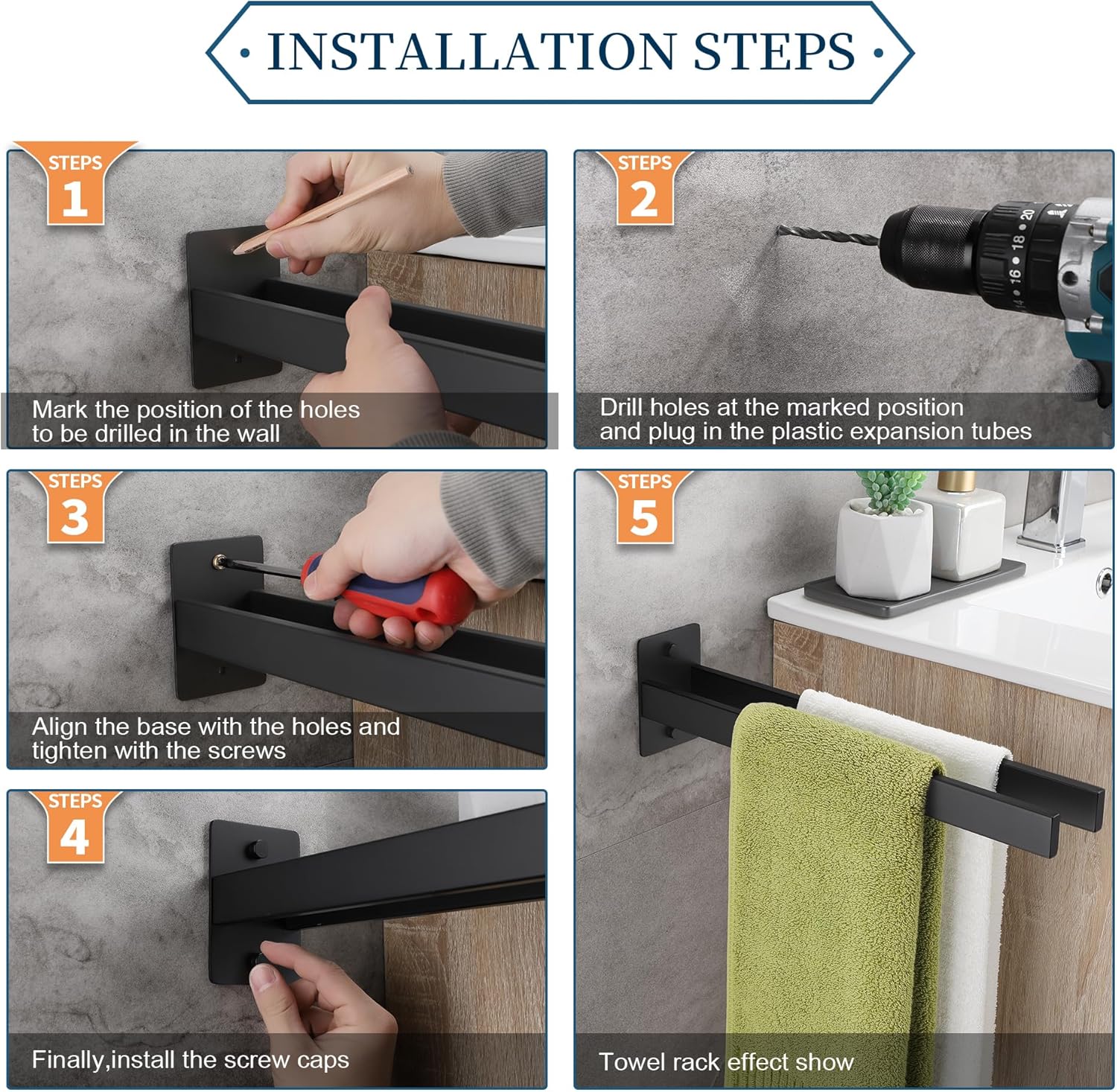 • Leicht zu installierende edel handtuch halterung: können an Wänden, Marmor und Fliesen angebracht werden. Gleichzeitig ist der Badetuchstange bad sehr einfach zu montieren, wir haben passendes Zubehör, um die Installation des geschirrtuchhalter zu